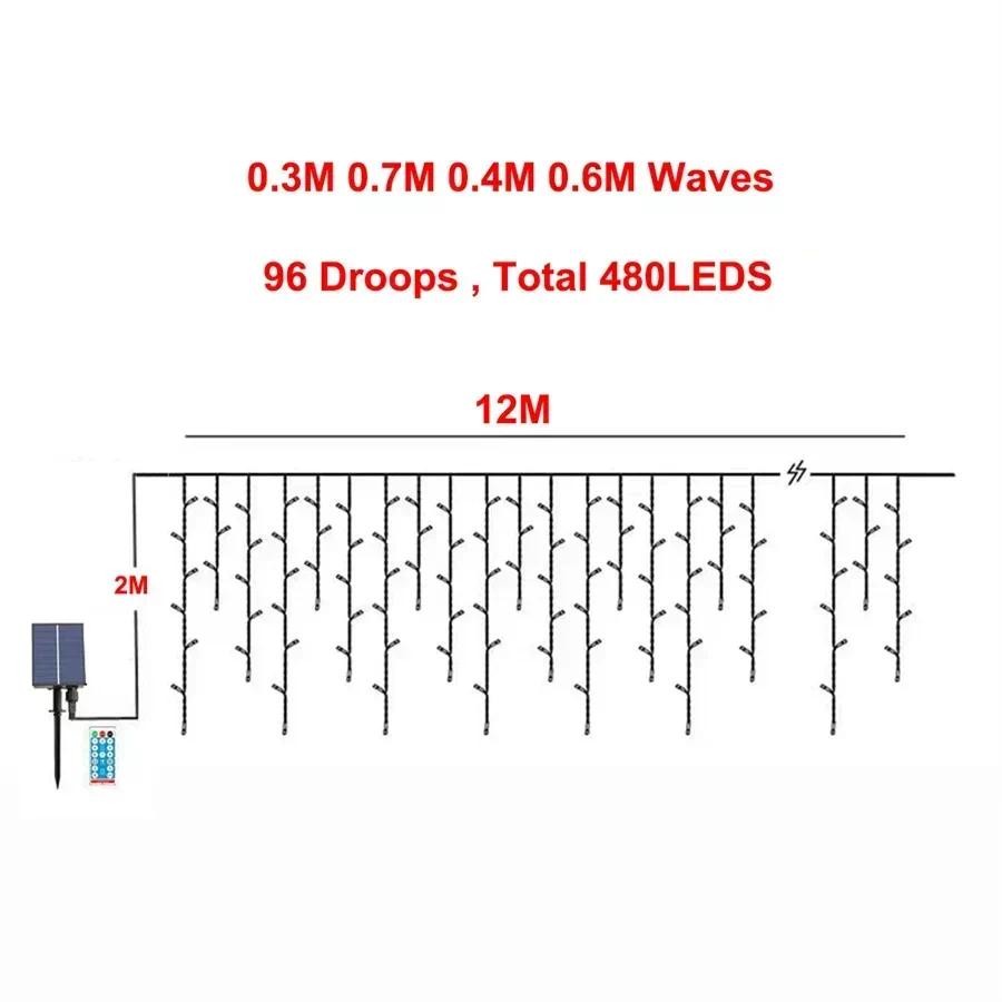 12M 18M Solar Christmas Icicle Light Outdoor icicle Christmas light Solar Curtain String Light with Remote for House Eaves Decor