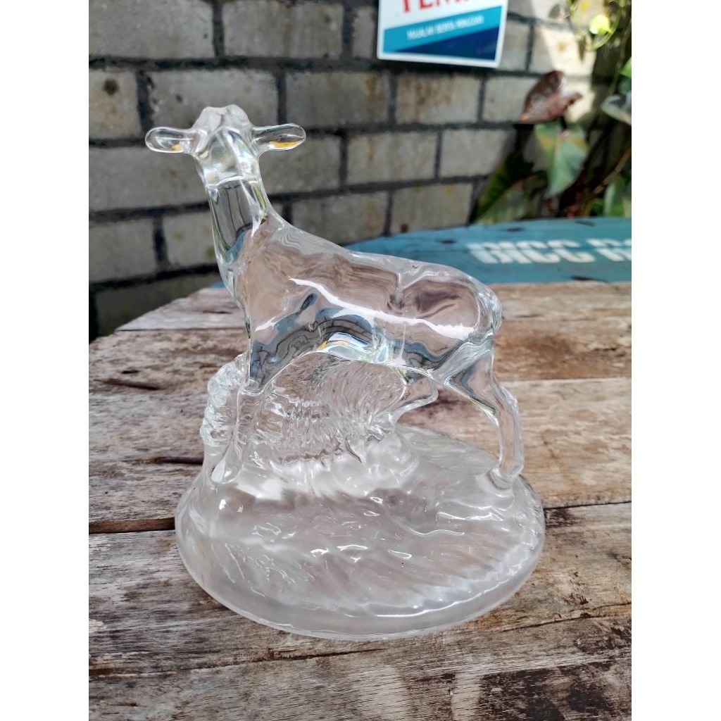 hiasan meja pemberat kertas kristal jadul bentuk rusa vintage