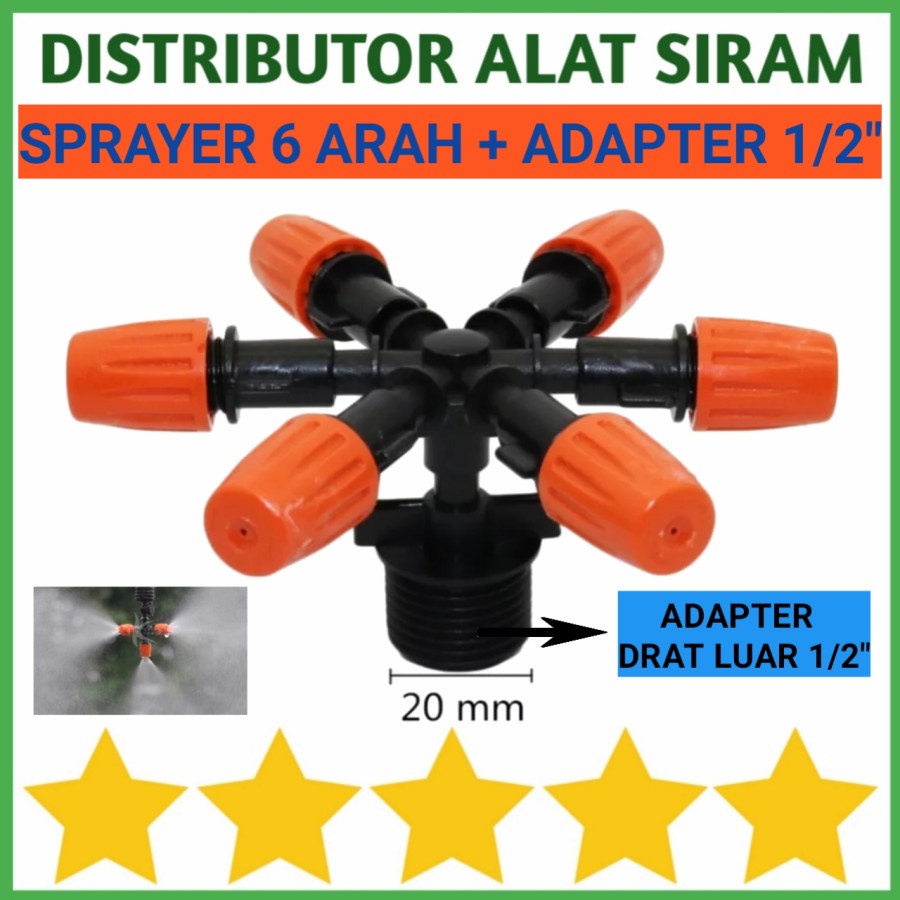 SPRAYER 6 WAY MIST NOZZLE ADJUSTABLE MISTING SPRINKLER + ADAPTER 1/2"