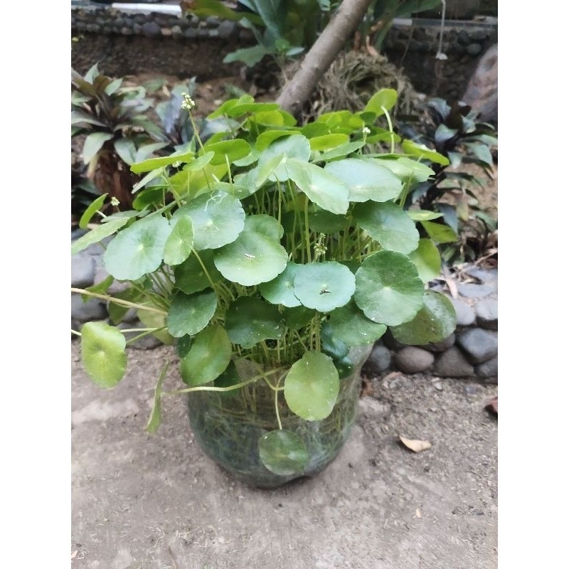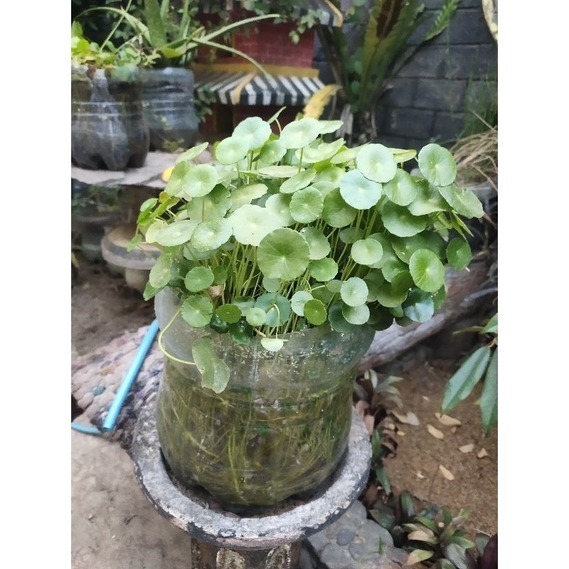 IMDA HANDICRAFT Paket 1 Pot Galon Bibit Batang PEGAGAN AIR Hydrocotyle Verticillata Tanaman Air Aquarium Stamplant Aquascape Kolam Air Tawar