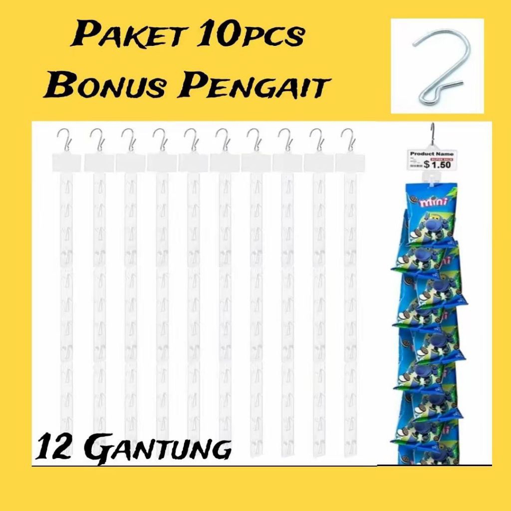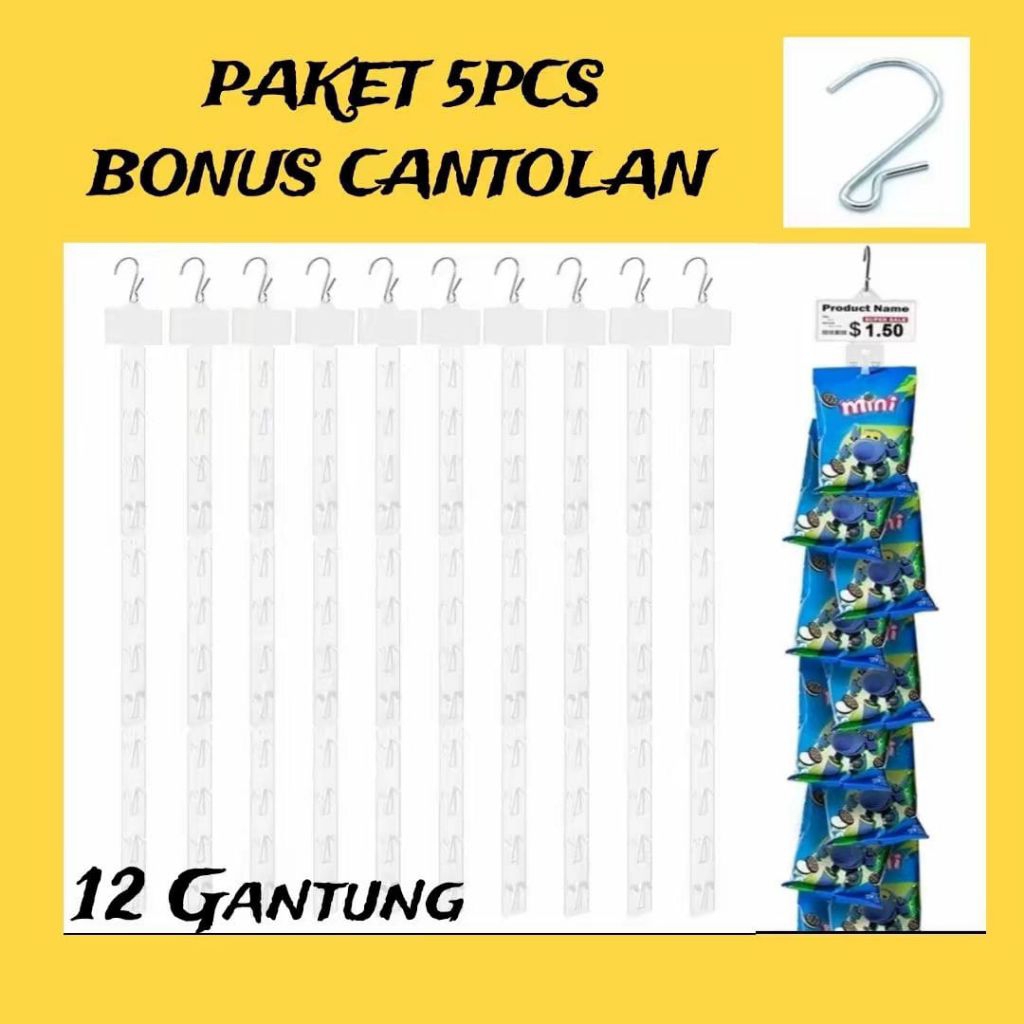 PAKET HEMAT 5pcs Gantungan Snack Warung Bonus Kait termurah Display Toko Clip Strip Display Gantungan Ciki Gantungan Snack Warung madura