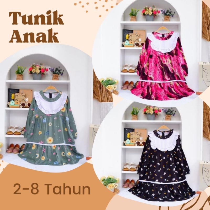 Baju Tunik Anak Perempuan Muslim Rayon Umur 2 3 4 5 6 7 8 9 Tahun Pakaian Muslim Anak Perempuan