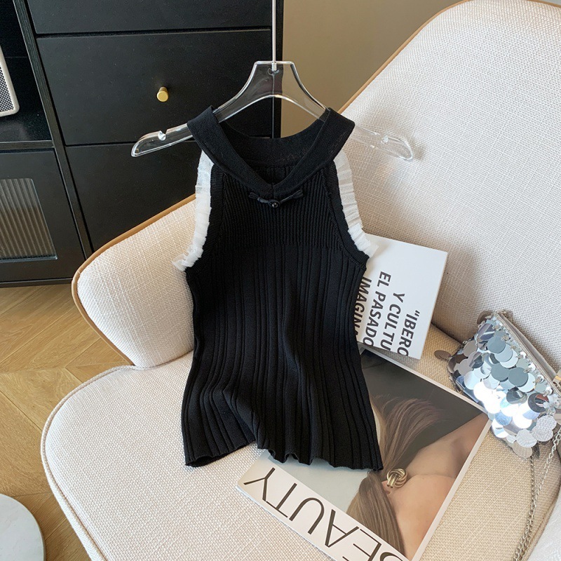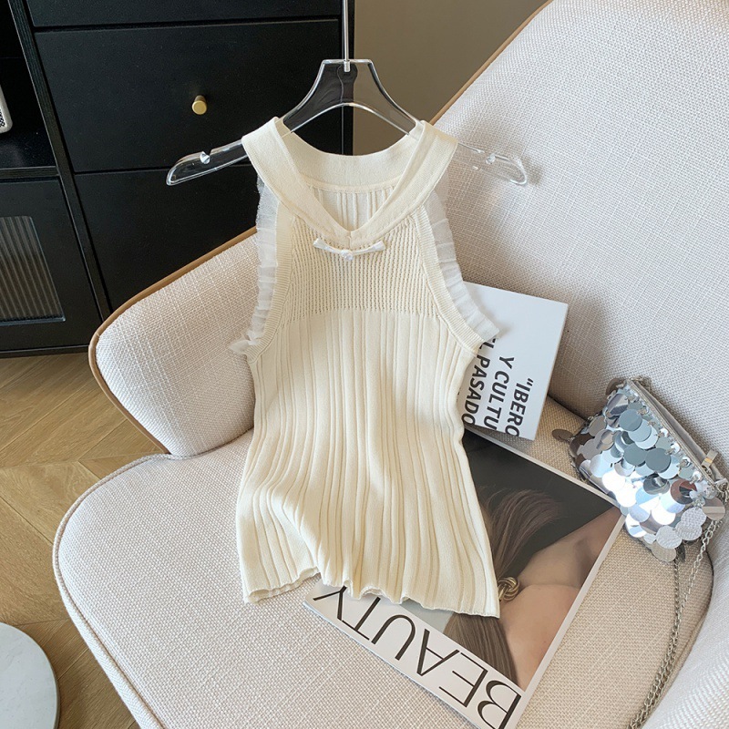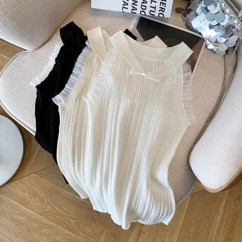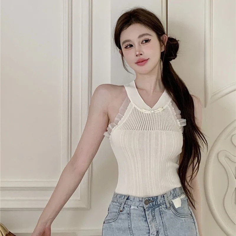 [Hallyu] Tanktop Vest Lace Knit Premium | Baju Ketekan Wanita TankTop Lace Renda Korean Style | Tank Top Wanita Vest Lace Knit Terbaru QMP
