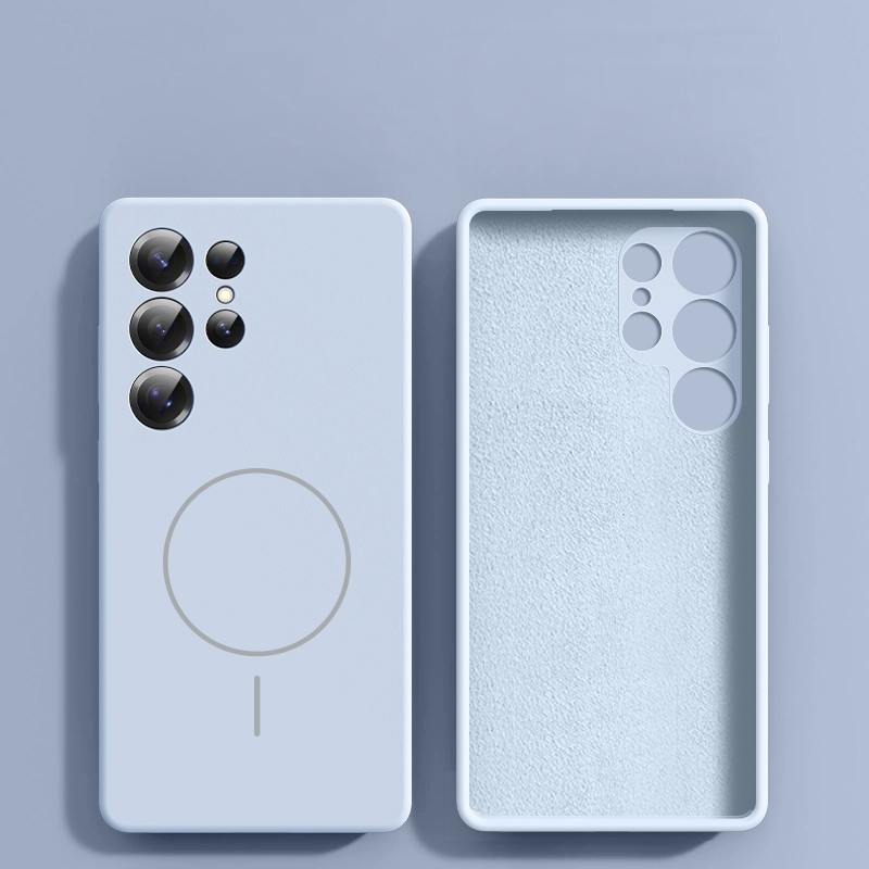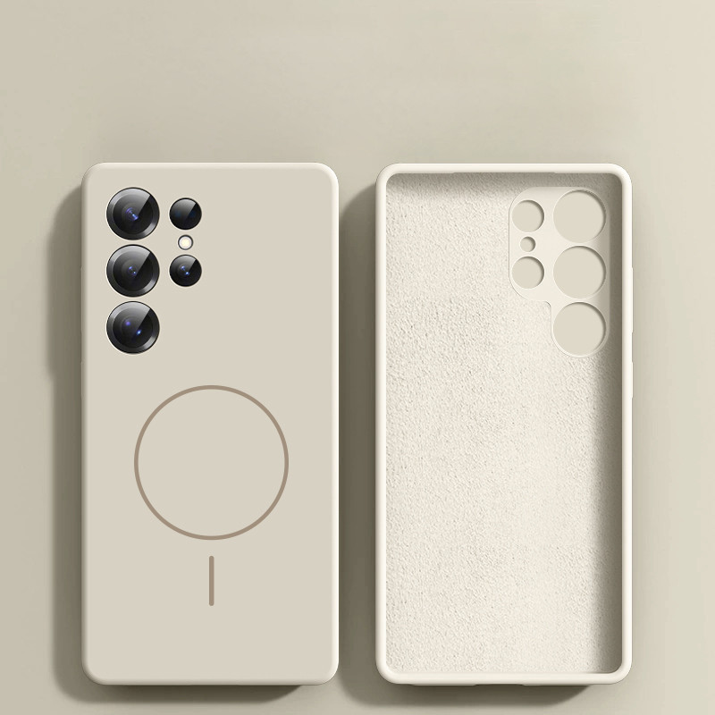 Kasus Telepon Pengisian Magnetik Silikon Cairan Nyata Untuk Samsung Galaxy S25 Ultra S25 + Lapisan Microfiber Tidak Ada Penutup Garis Cetakan