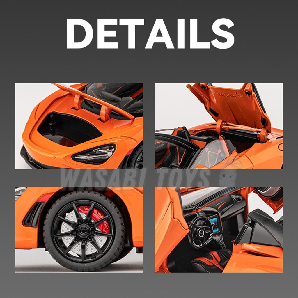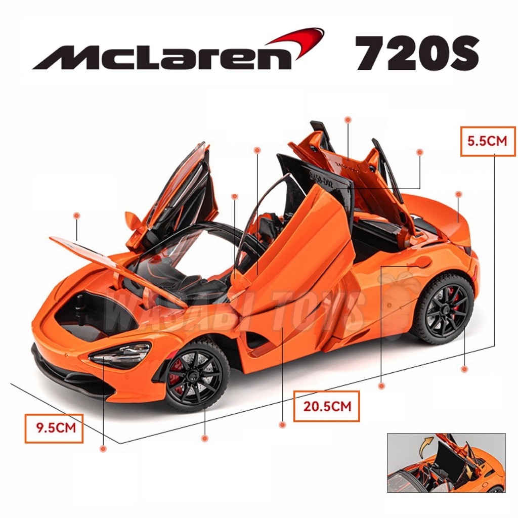 Diecast 1:24 Mobil McLaren 720S 720 S (Fitur Buka Atap, Bagasi, Spoiler, Lampu, Klakson, Ban Belok)