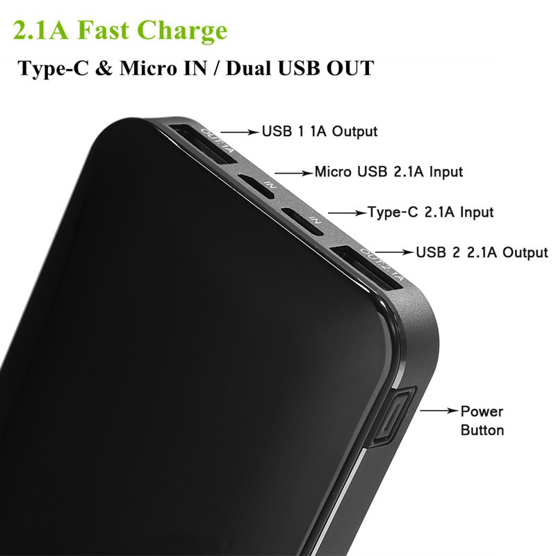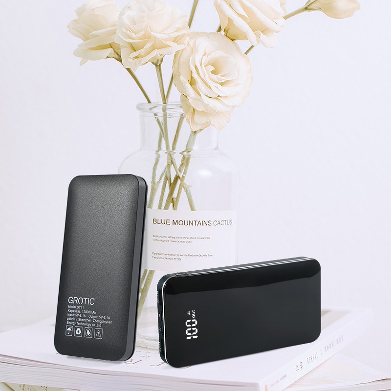 GROTIC Powerbank 12000mAh Dual Input Type C & Micro Dual USB Output LED Power Display GY11
