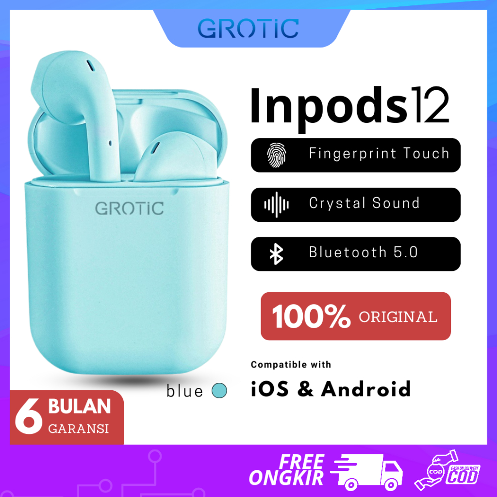GROTIC Headset Bluetooth inpods 12 TWS Macaron Earphone True Wireless Stereo HIFI Sentuh Earbud i12