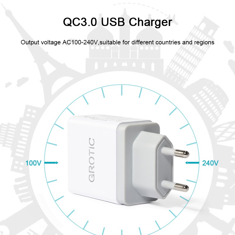 GROTIC Kepala Charger Fast Charging 3A QC3.0 4 Port USB Charger Adaptor BK-376