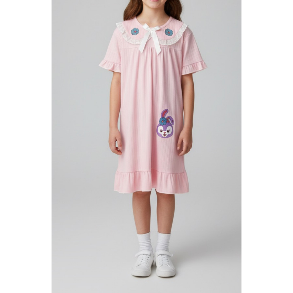 Mengdamei Daster Anak Krah Renda Ungu | Daster Mini Anak Perempuan