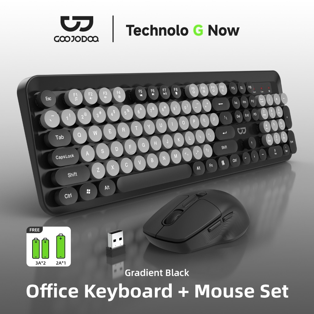 GOOJODOQ Wireless Bluetooth Keyboard Mouse Set 2.4G With 104 Keyboard and 1600 DPI Mouse For Laptop