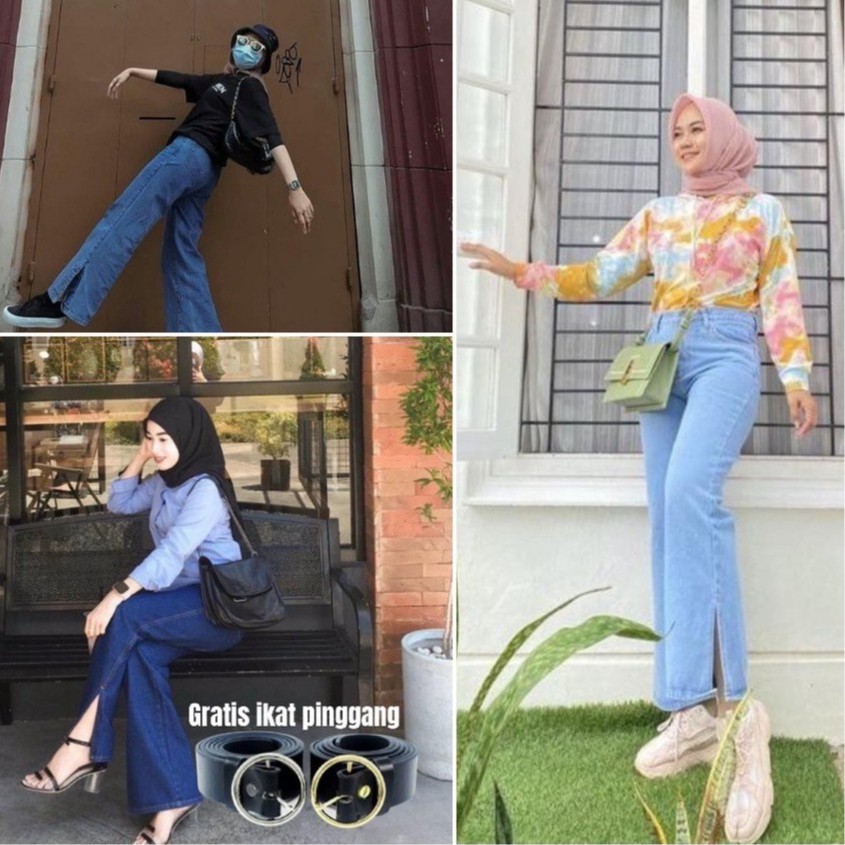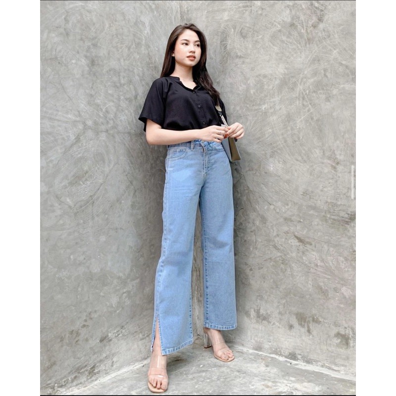 KULOT JEANS BELAH SAMPING // CELANA KULOT HW BELAH JEAN TEBAL / HIGHWAIST KULOT JEANS WANITA EONNI