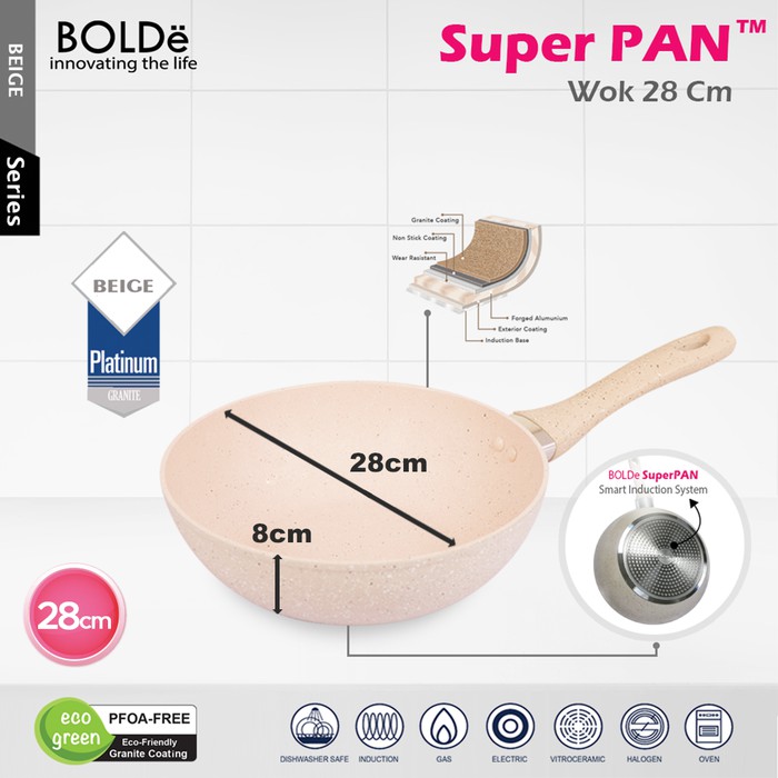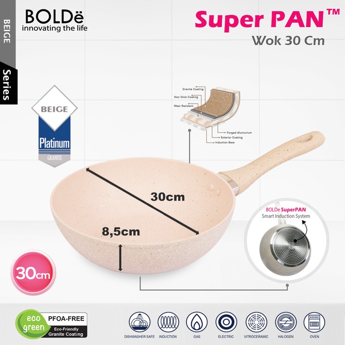 BOLDe SUPER PAN WOK - Panci Wajan GRANITE Coating BEIGE