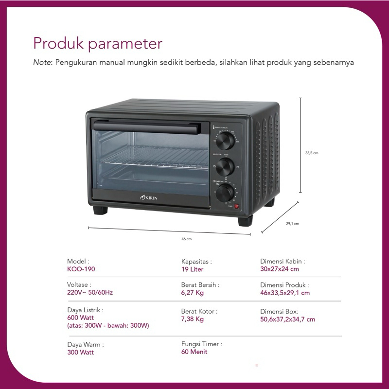 KIRIN Oven Toaster Listrik 19L KBO-190 NEW