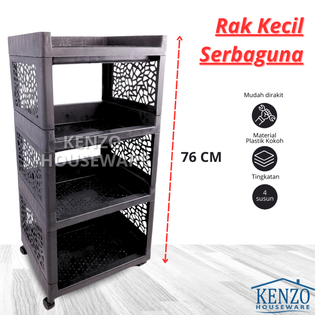 Rak Serbaguna 4 Susun Plastik Besar Rak Susun Plastik Roda Awet Kuat