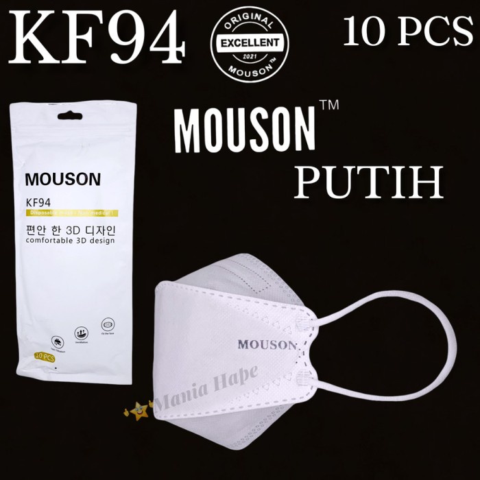 [ MOUSON ] Masker Premium KF94 Warna isi 10 Pcs 4 Ply Tali Sewarna ORIGINAL NF