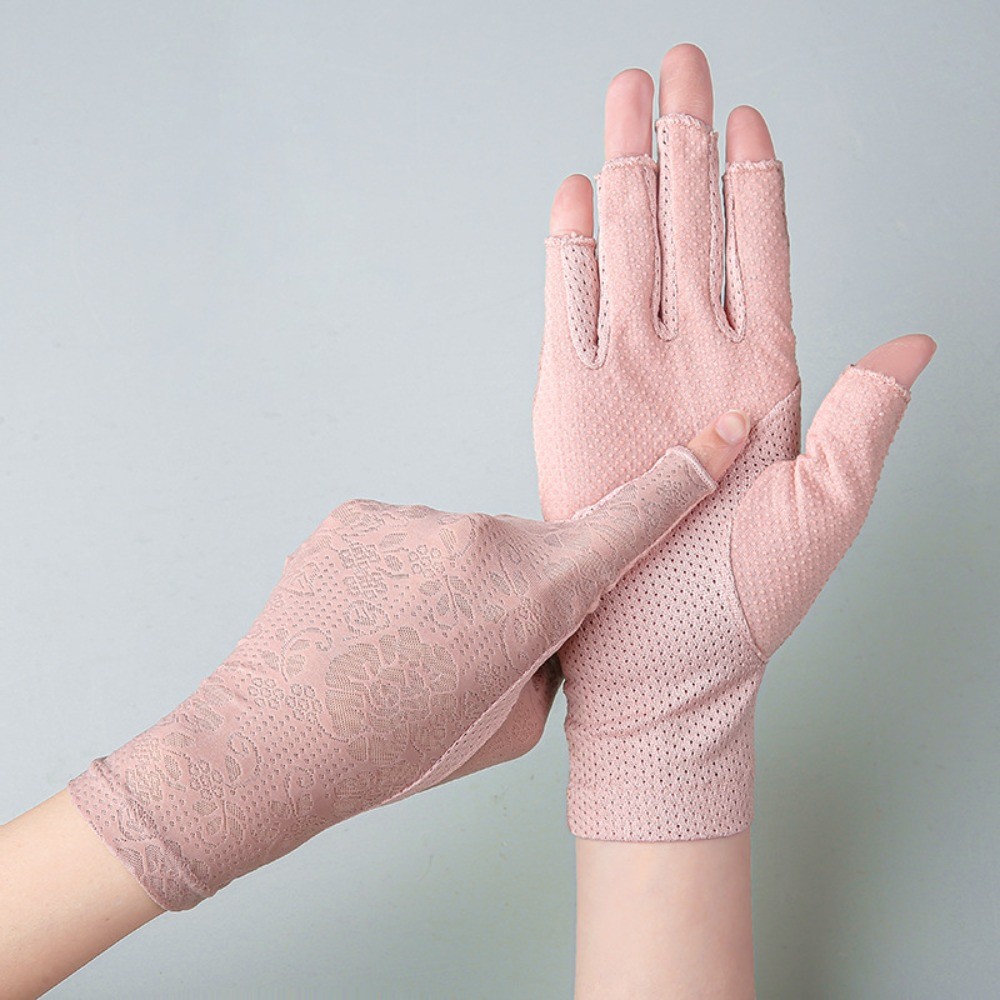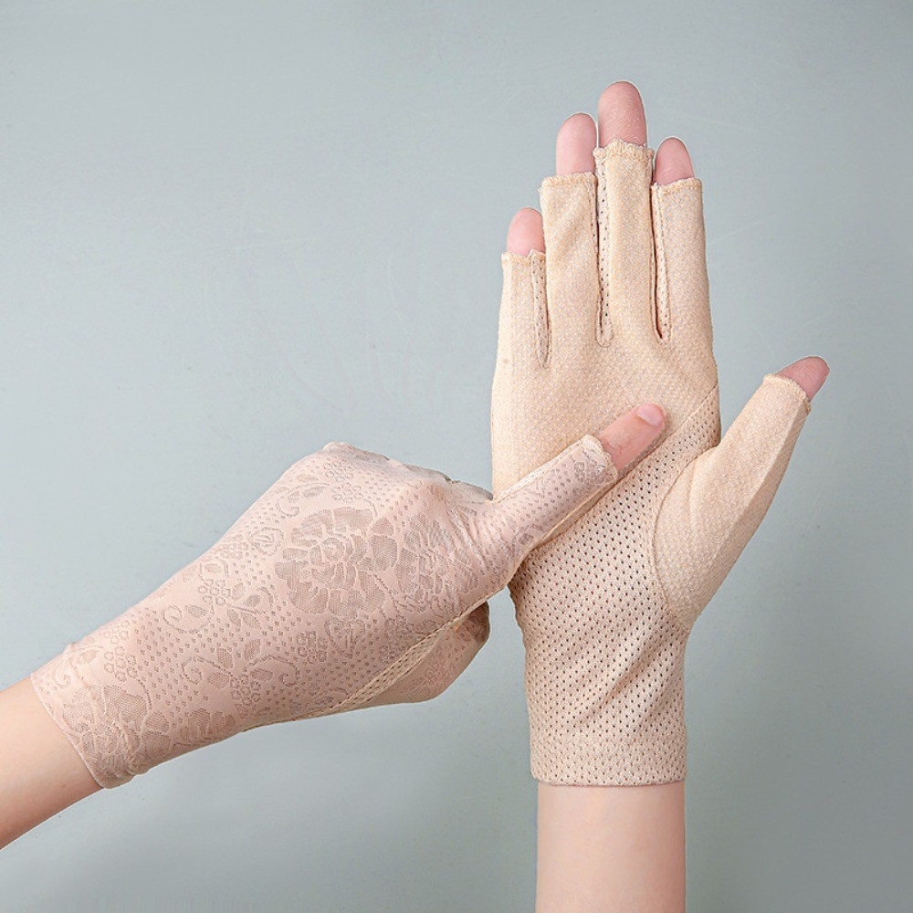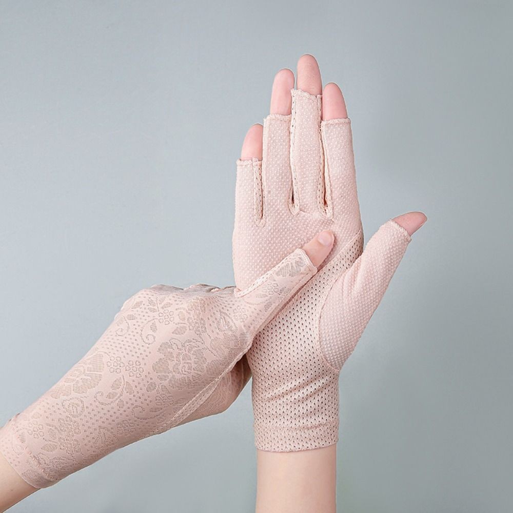 New Non-slip Sunscreen Gloves Half Finger Breathable Ice Silk Gloves Elasticity Thin Cycling Gloves Summer