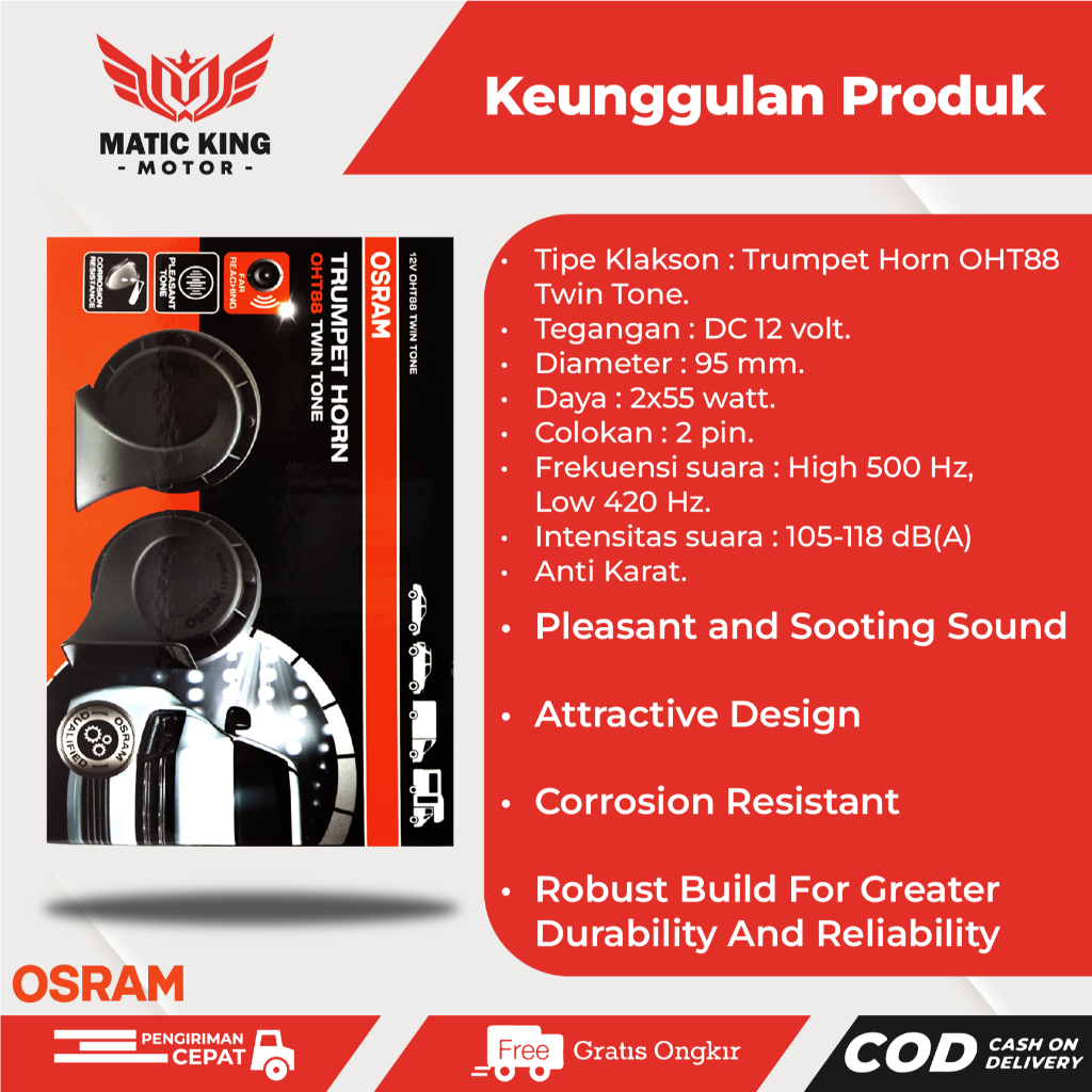 OSRAM Klakson Keong Motor Nmax Aerox Lexi Mio Fino Soul GT Xride FreeGo Fazzio Jupiter Vega Vixion Byson Force1 Model Trumpet