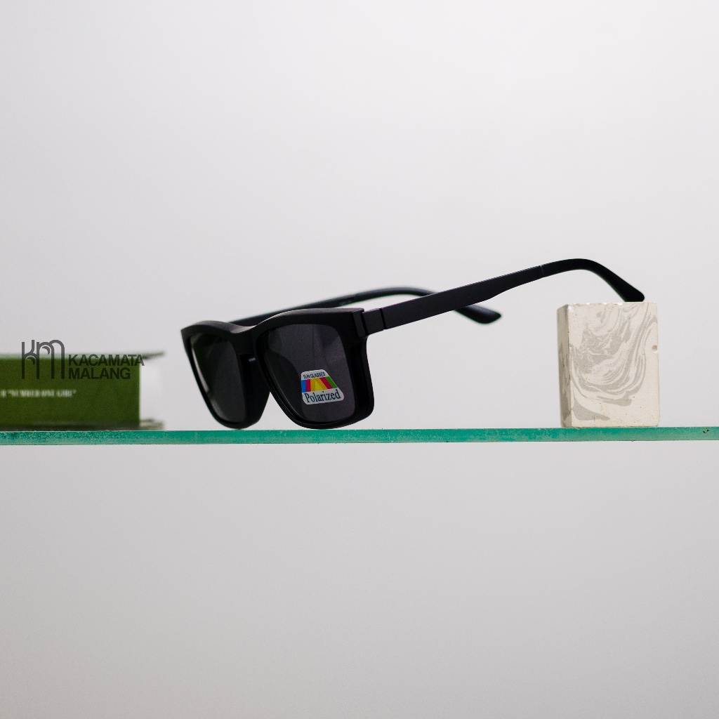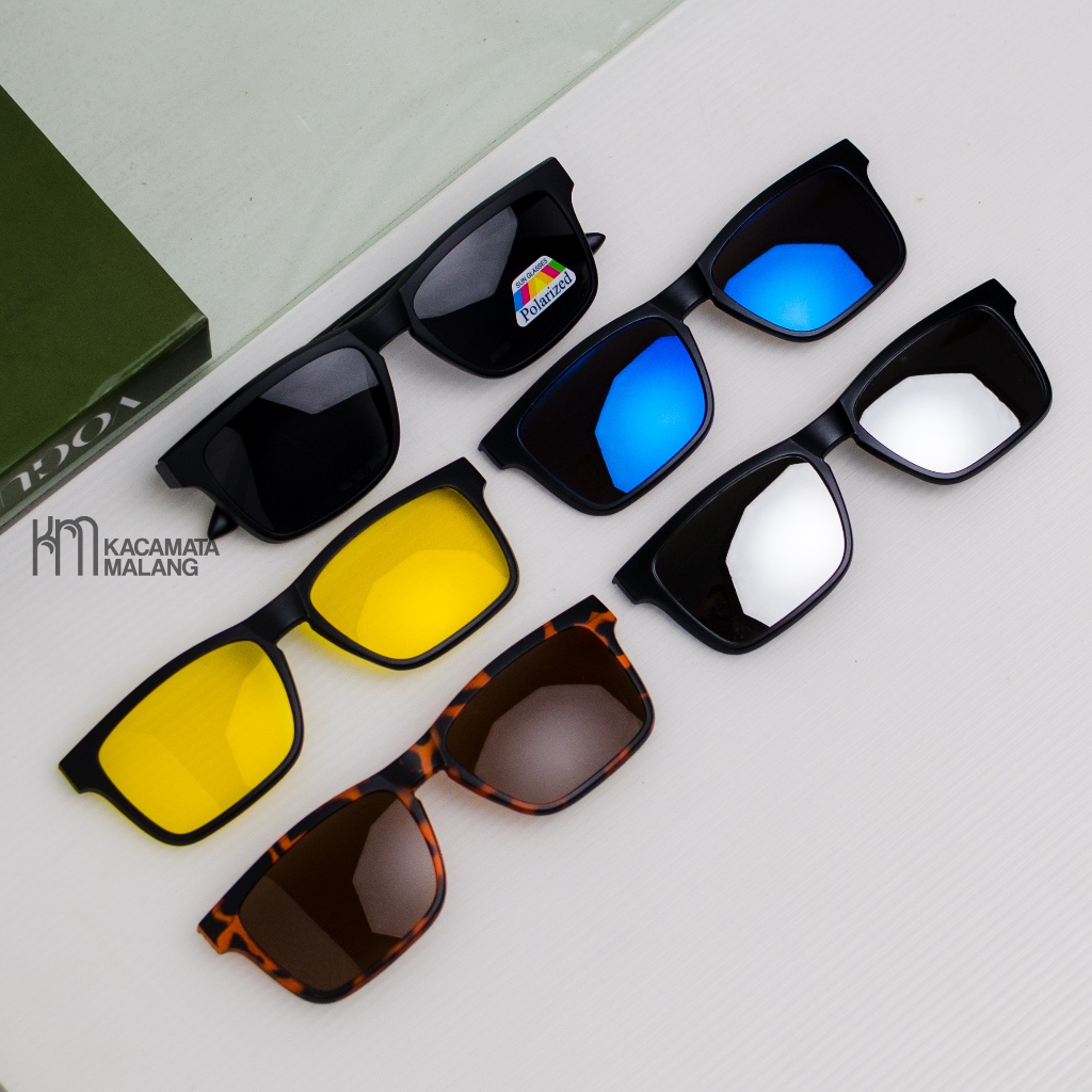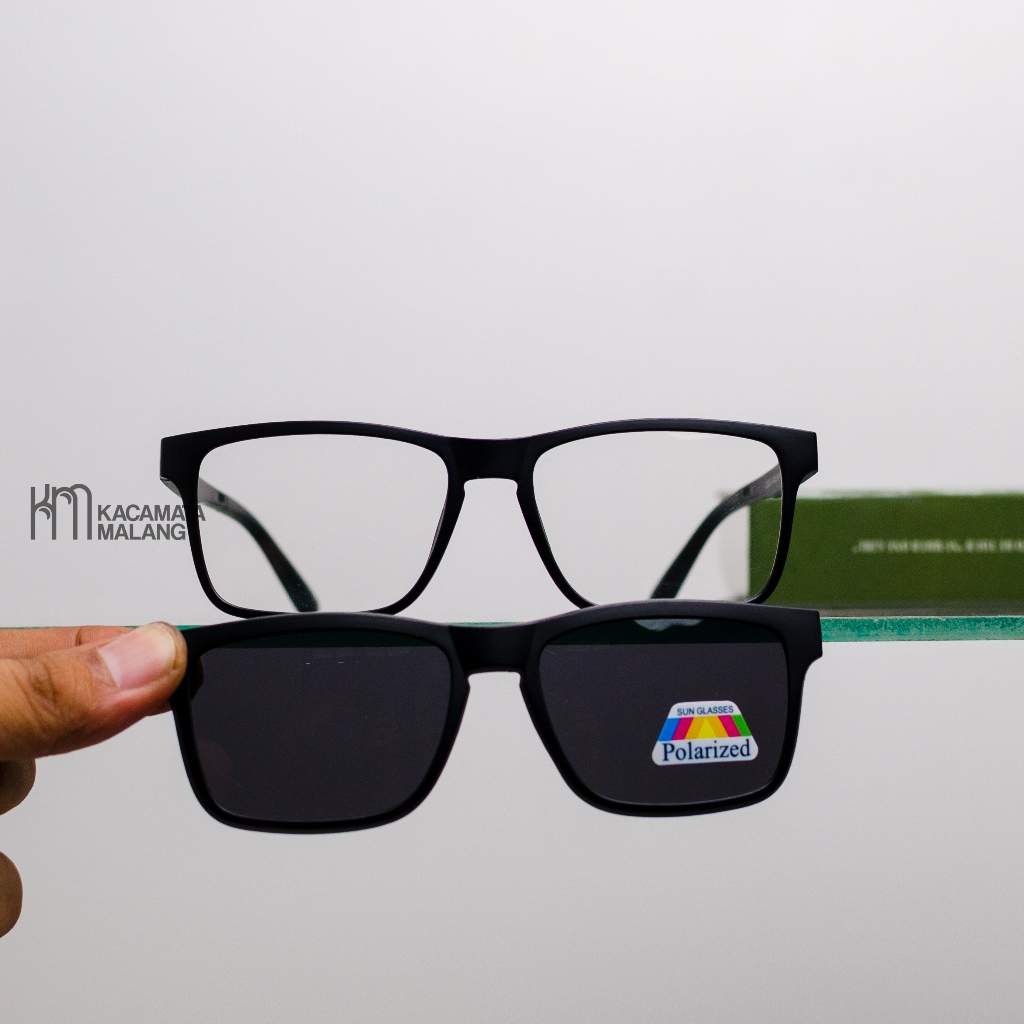 Kacamata Malang - Kacamata Clip On 5 Lensa Kotak Plastik Solid Hitam Pria Wanita - Aruna 02