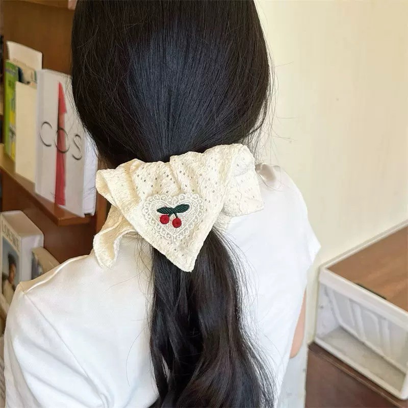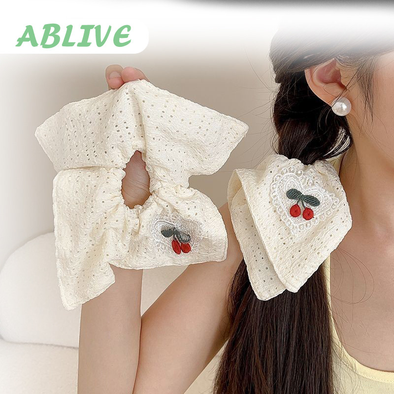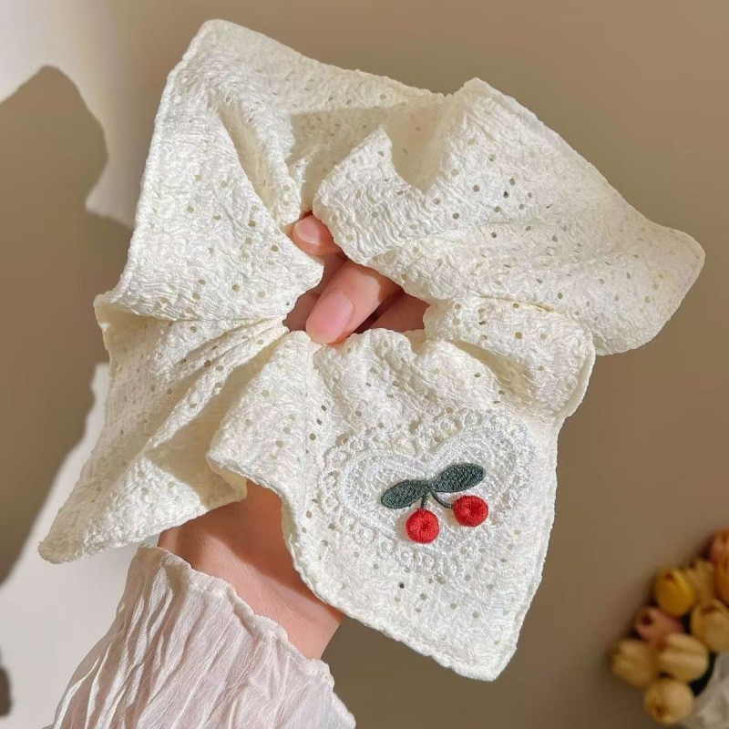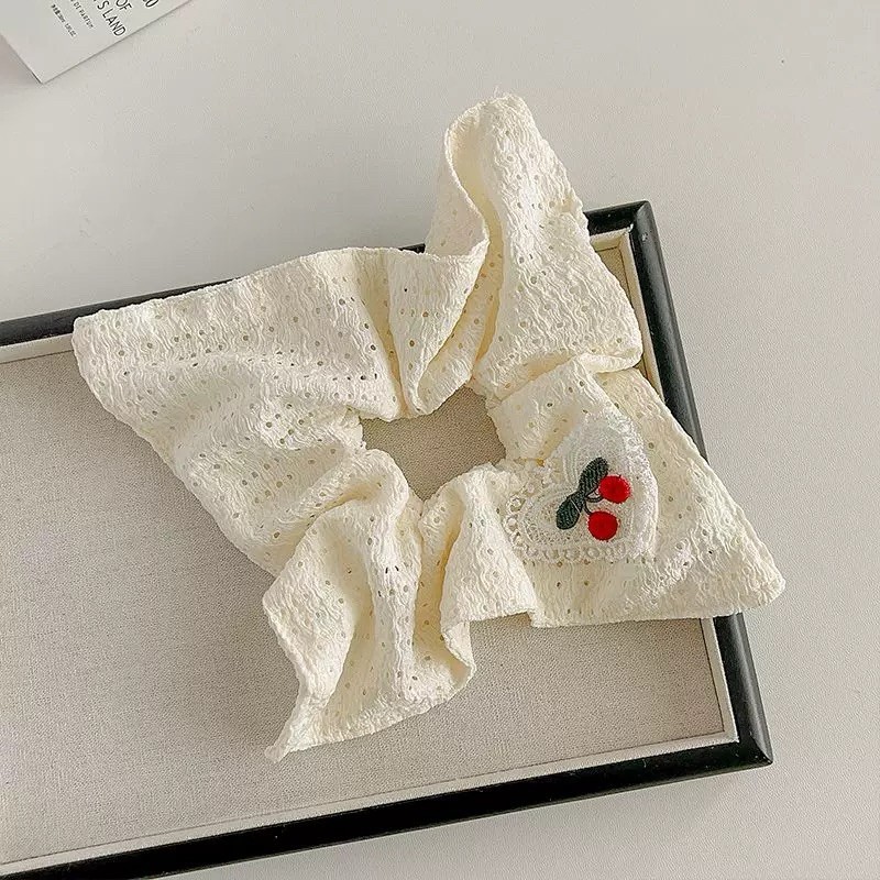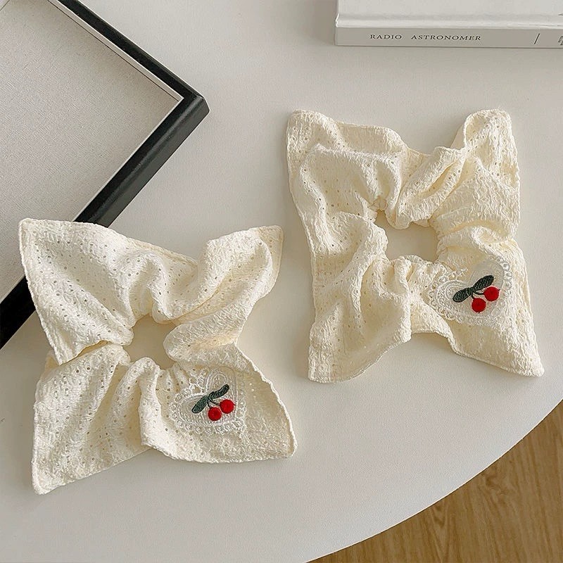 ​​Scrunchie Cherry Jumbo Karet Korea Motif Coquette Ikat Rambut Besar Wanita Fashion Terbaru