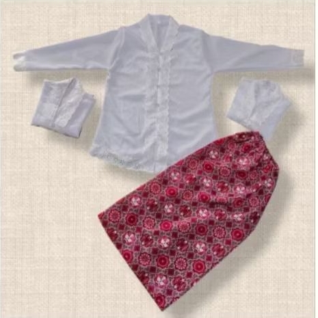 Setelan Kebaya Batik Merah Anak Sekolah SD