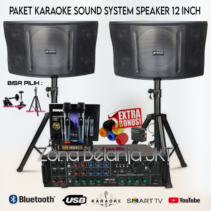 PAKET KARAOKE SOUND SYSTEM SPEAKER TARGA 12 INCH AMPLIFIER USB BLUETOOTH MURAH BERKUALITAS ORIGINAL