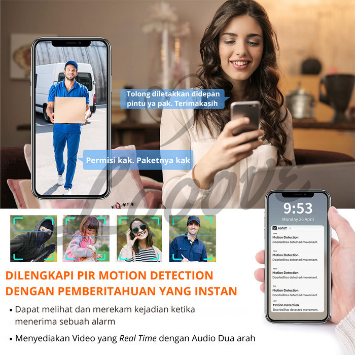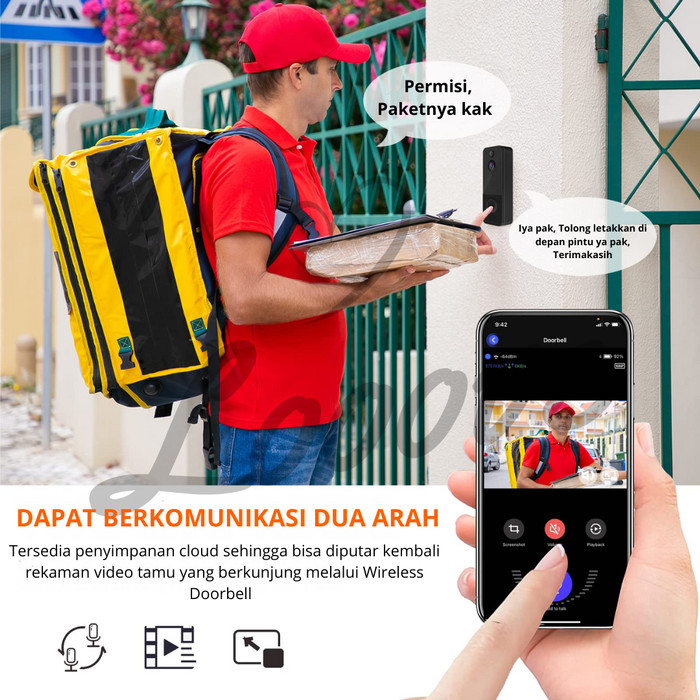 Bel Pintu Kamera Hd + Suara 2 Arah - Doorbell Wifi Wireless Smart