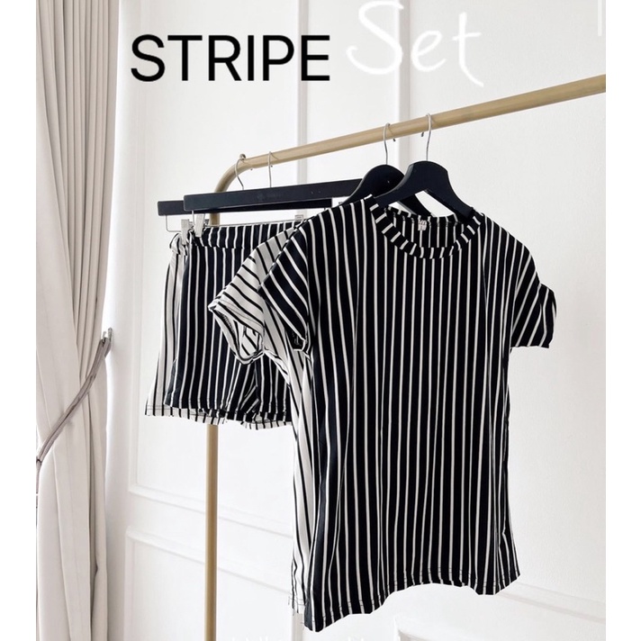 STRIPE SET EC 9044 / SET ATASAN CELANA GARIS GARIS / ATASAN SIMPLE PREMIUM / SET KOREA