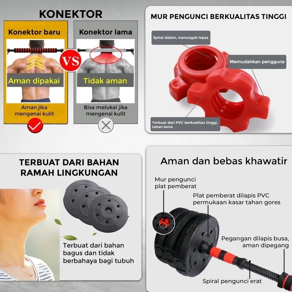 Dumbell Set 20KG 30KG Peralatan Fitness Barbel Bisa Disambung Peralatan Gym Di Rumah Peralatan
