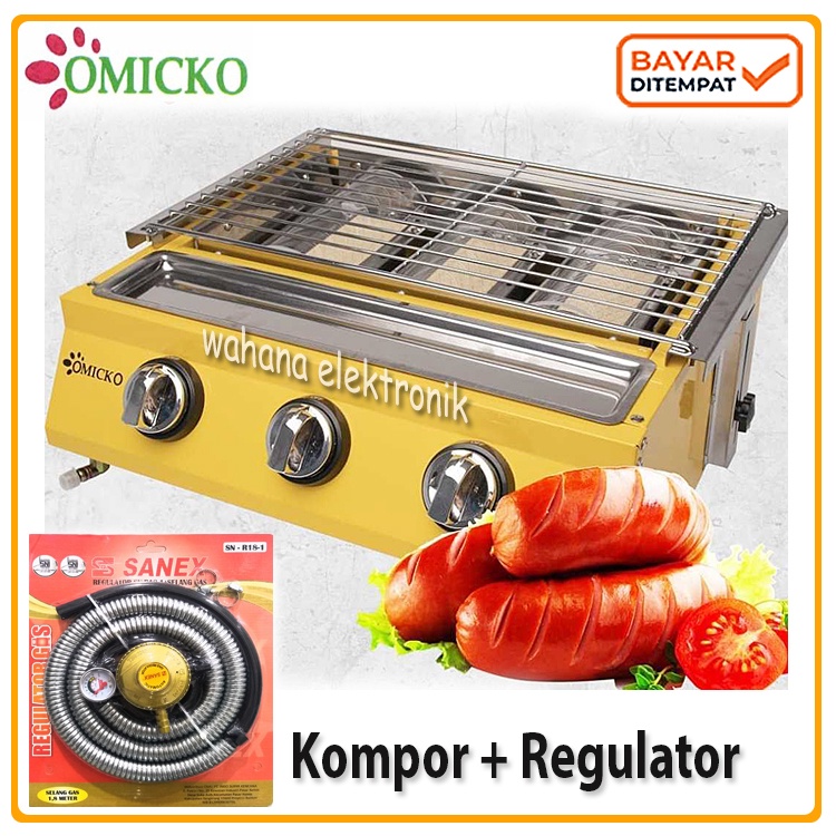 TREN TERBARU Kompor Sosis Bakar Sate Bakar 3 Tungku/BBQ GRILL Paket Regulator Gas Kompor Panggang Termurah