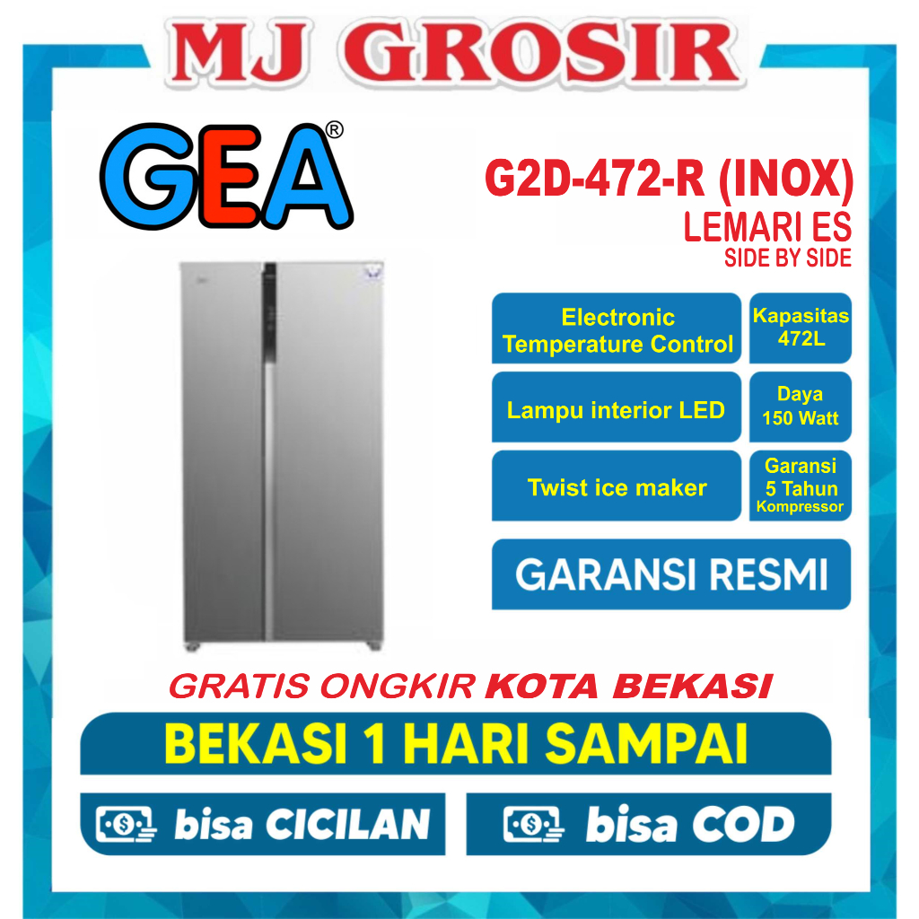 KULKAS GEA G2D 472 INOX / G4D 404 INOX LEMARI ES 2 PINTU SIDE BY SIDE