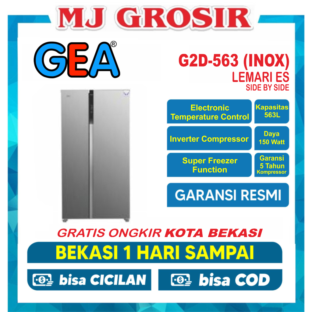 KULKAS GEA G2D 563 INOX / G4D 460 LEMARI ES 2 PINTU SIDE BY SIDE
