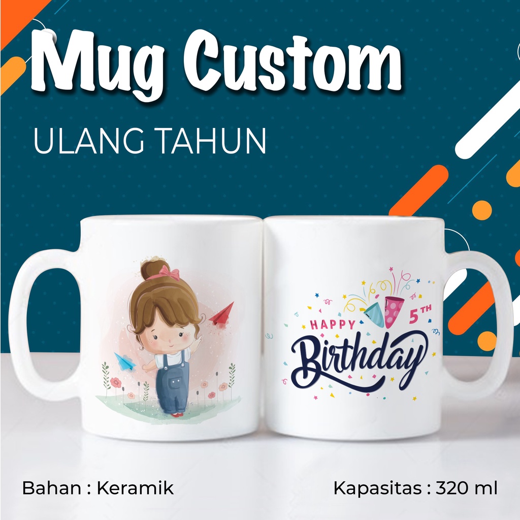 Mug custom kado ulang tahun - happy birthday ! Mug keramik 11 oz