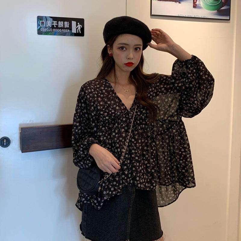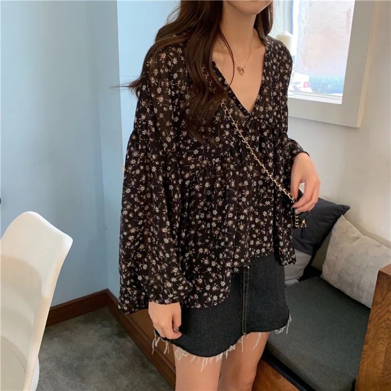 [DAISY]Blouse wanita bunga lengan panjang hijab muslim pantai