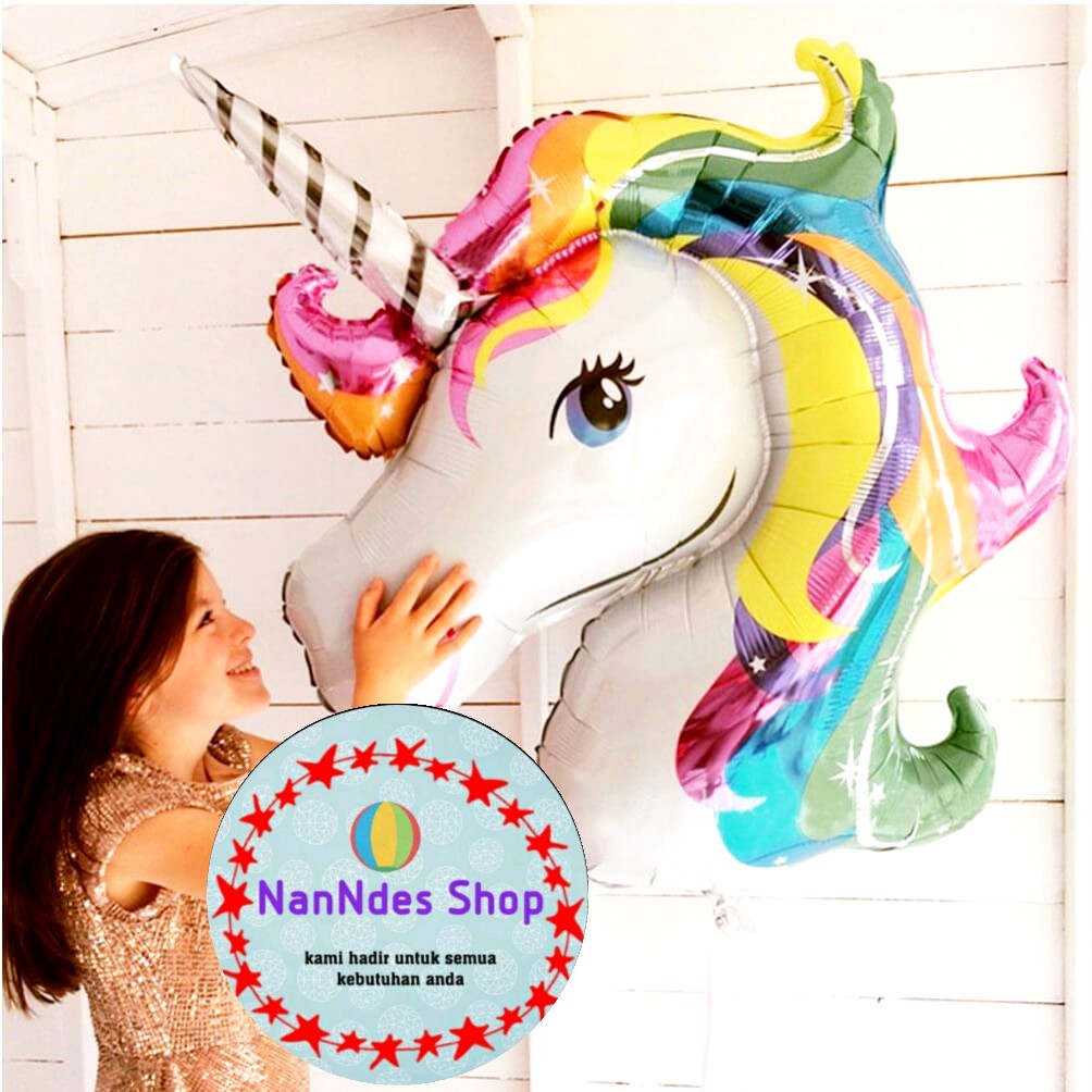Unicorn Head Balon Foil BESAR/ Balon Kepala Karakter Ponny Rainbow