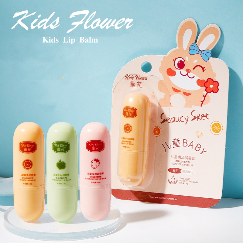 Kids Flower Fruit Food Grade Lip Balm Anak Buah Segar Bayi Lip Balm Pelembab Bibir 3,8g - VP028