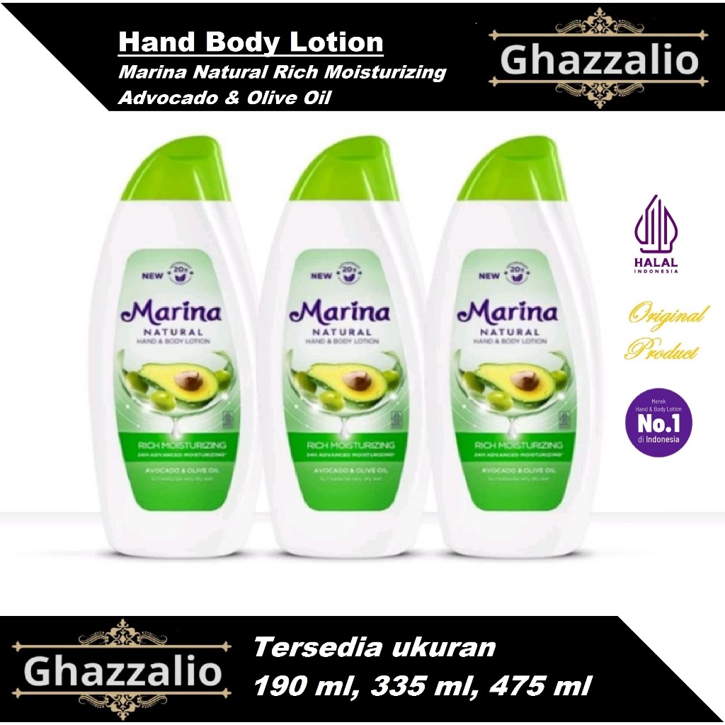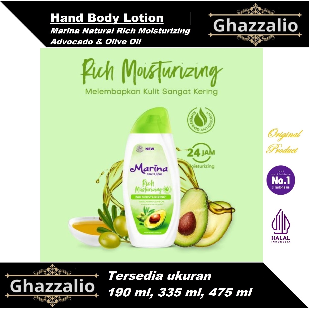 Marina Natural Rich Moisturizing - Avocado & Olive Oil - 190 ml, 335 ml, 475 ml