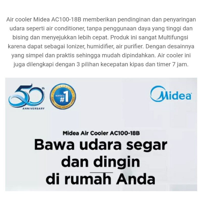 Air cooler Midea AC 100 18B berfungsi untuk menjaga ruangan agar tetap dingin dan sehat
