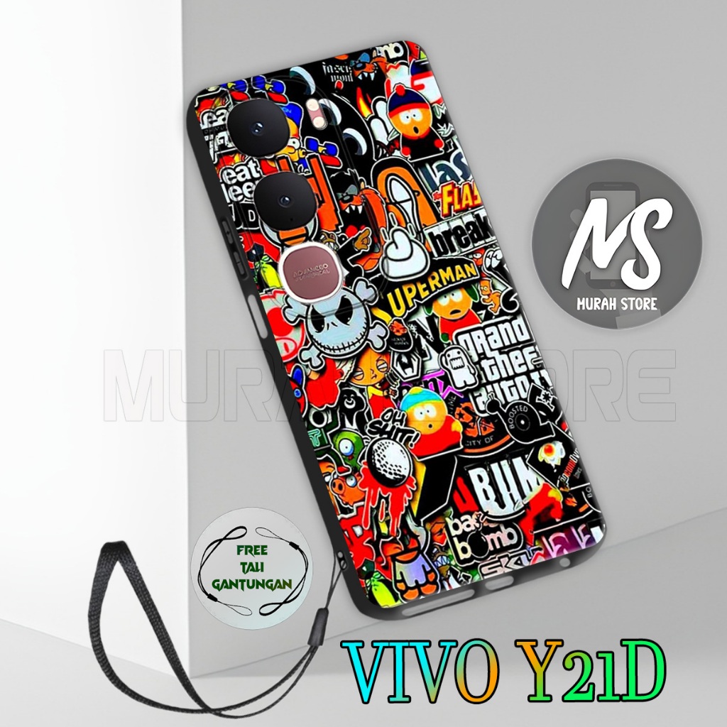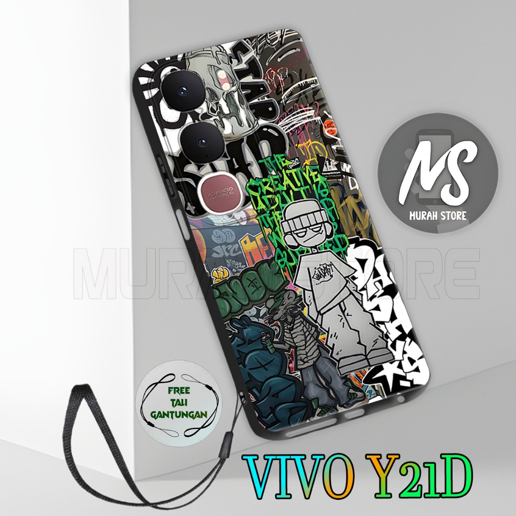 MS33/ Softcase Karet VIVO Y21D + TALI GANTUNGAN HP / Motif Grafity / Case VIVO Y21D / Silikon VIVO Y21D Desain trendy, Cocok Untuk HP Anda
