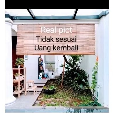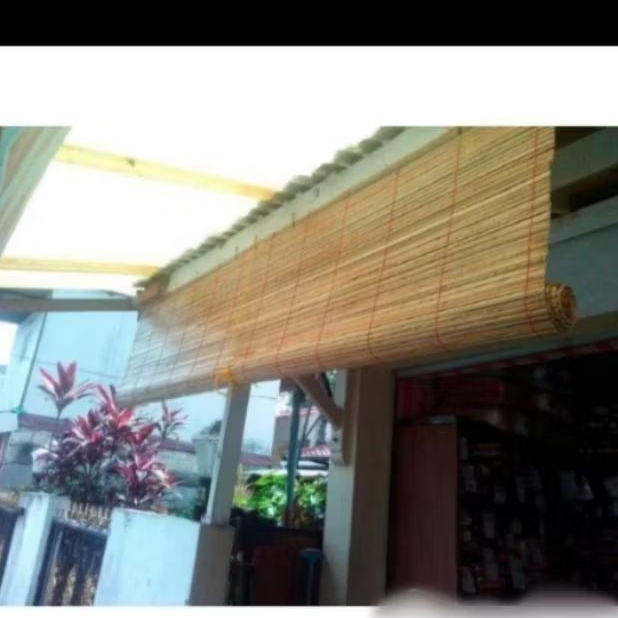 tirai bambu kerey outdor berkualitas ukuran 2mx2m lengkap tali PENGGULUNG kerekan naik