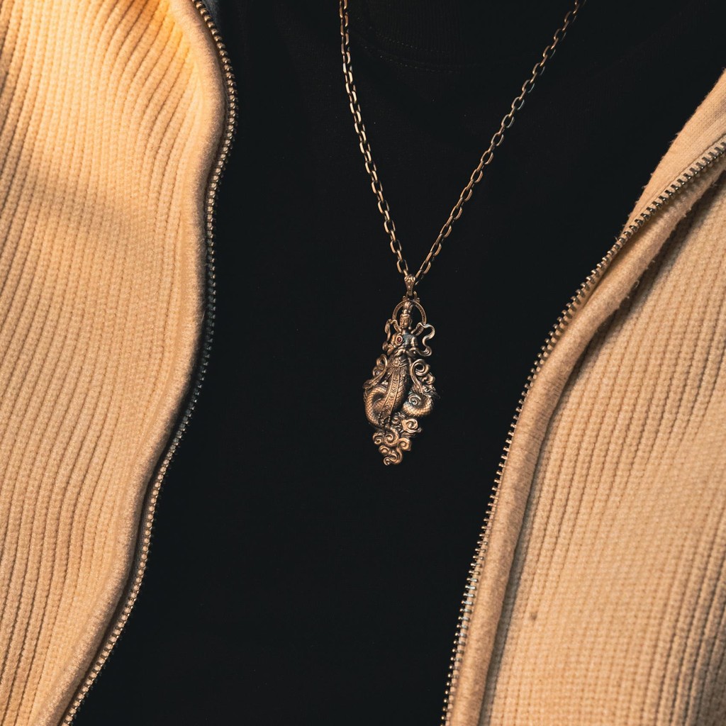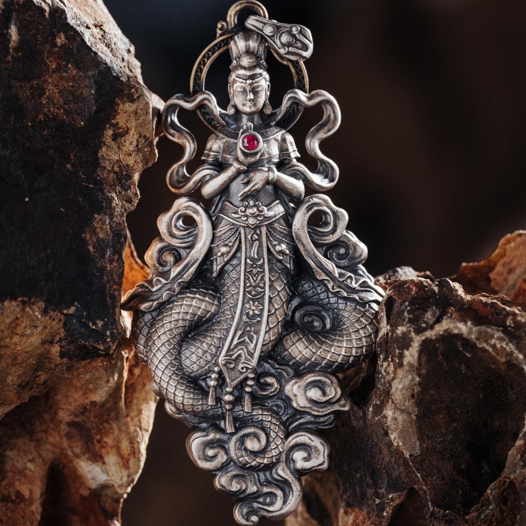 Kalung Gantung Vintage Perak-Plated Tembaga Nuwa Permaisuri Gaya Cina Trendy Gaya Cina Baru Kepribadian Niche Kalung Gantung Perak Imitasi untuk Pria