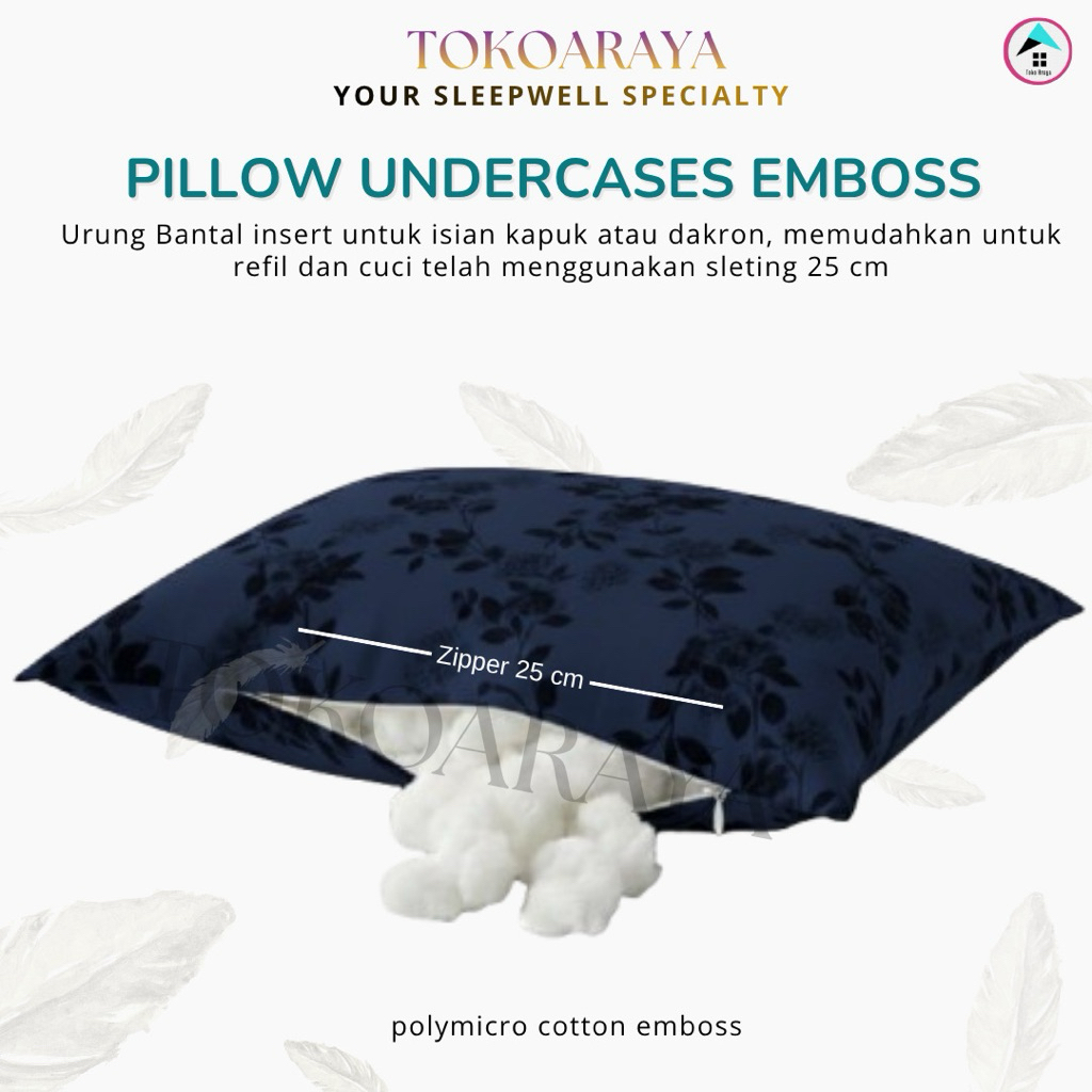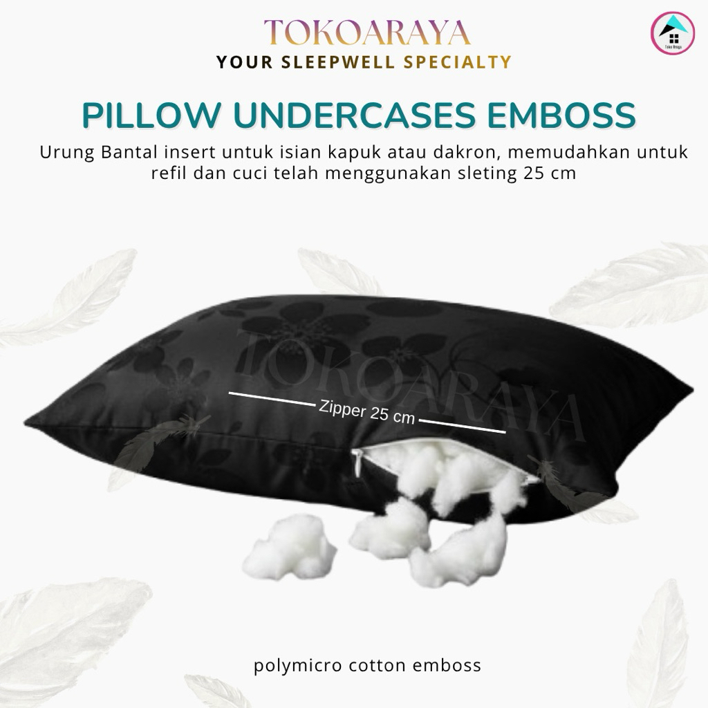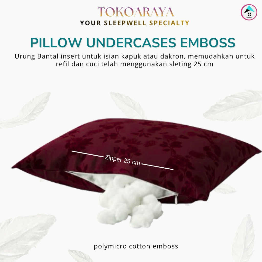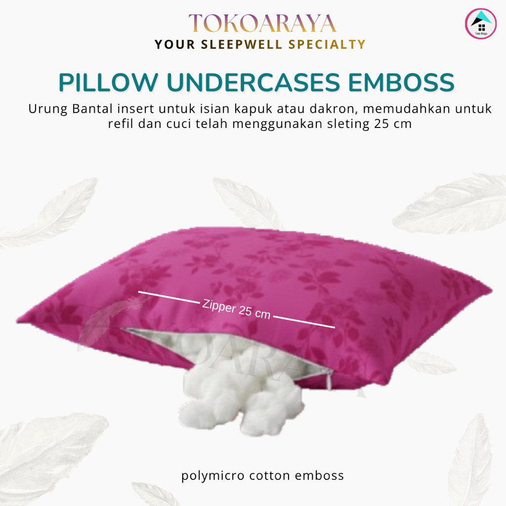 TOKOARAYA - Urung Bantal Sarung Dalaman Guling Pakai Sleting jepang 25cm Katun Cotton Polymicro Emboss