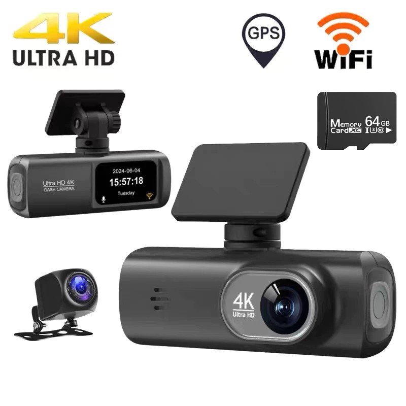 4K Dashcam Mobil WIFI GPS Layar Sentuh IPS Night Vision Dual Lens Perekaman Loop 24 jam with 2160P Rear Cam Camcorders & Parking Cameras