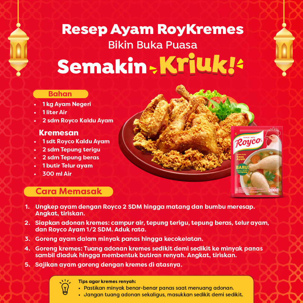 Royco Bumbu Kaldu Penyedap Rasa Ayam Kampung dengan Kaldu Gold Standard 94g x36 - Menu Buka Puasa Recook Ayam Goreng Kremes