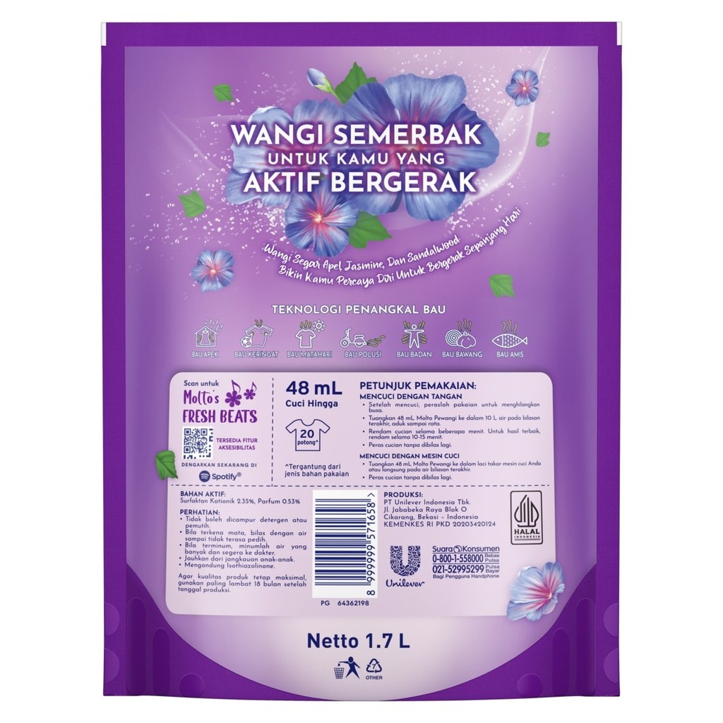 Molto Pewangi Pakaian Sport Fresh 7x Kesegaran & Anti Bau 1.7L