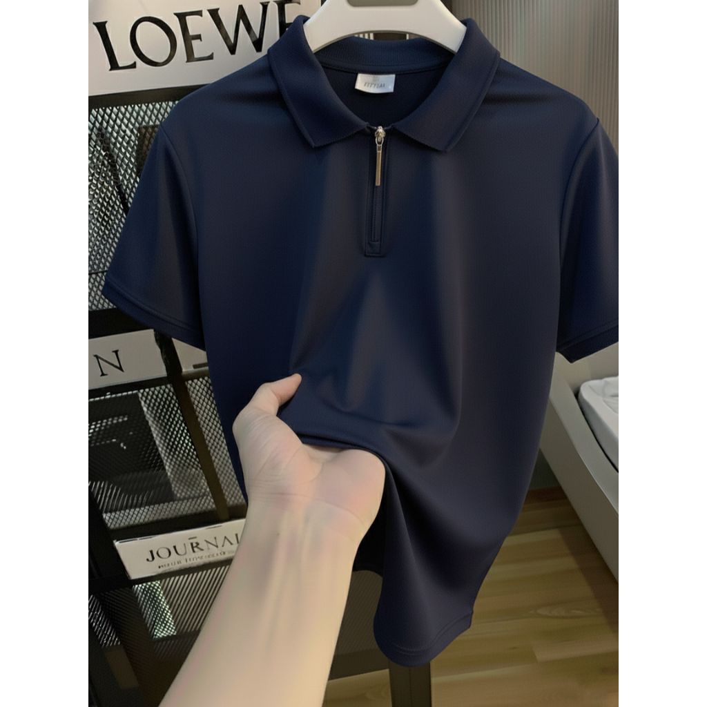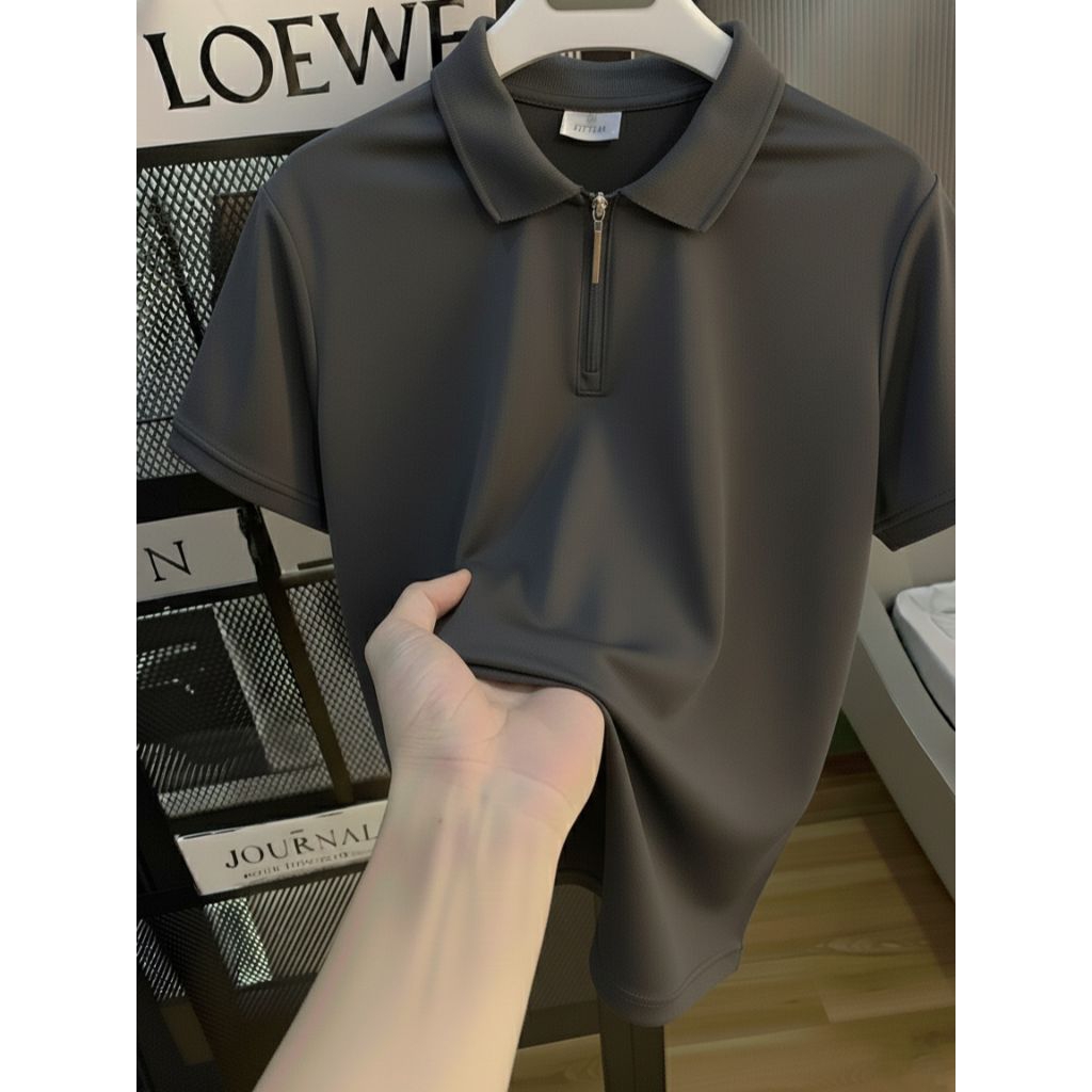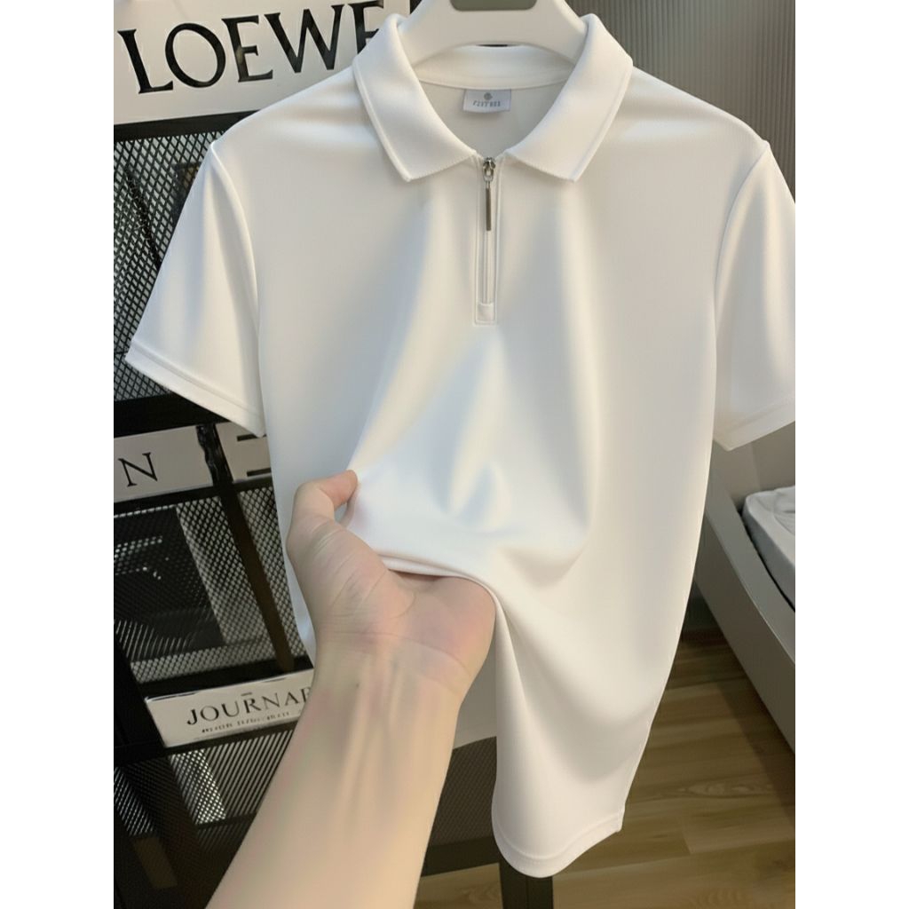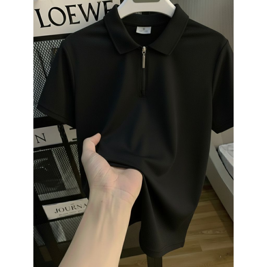 Cogan Kaos resleting pria kerah lengan pendek premium distro kekinian ukuran M L XL XXL