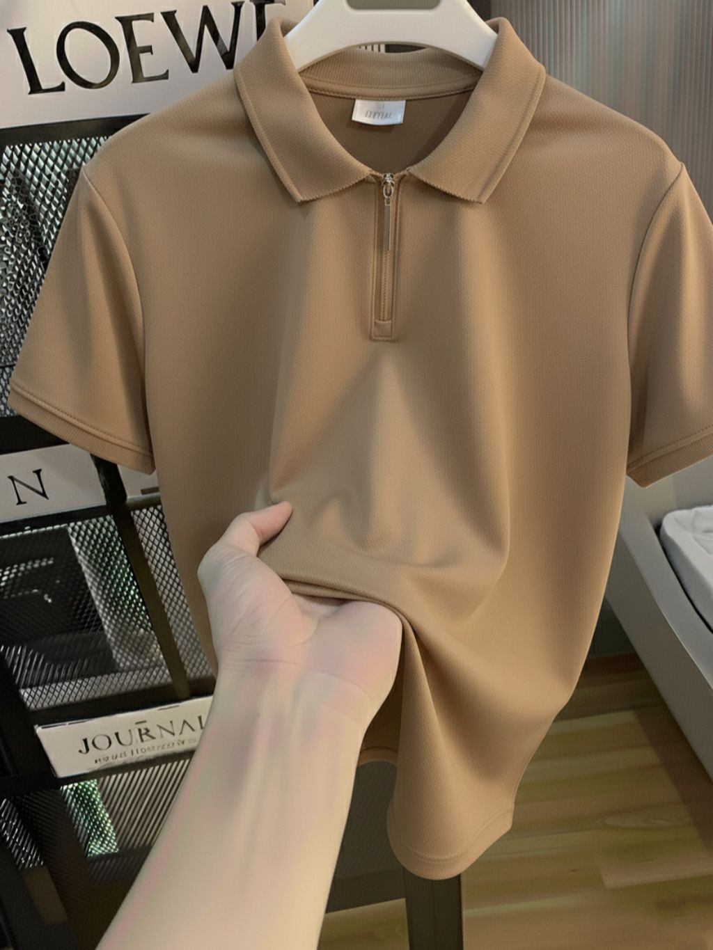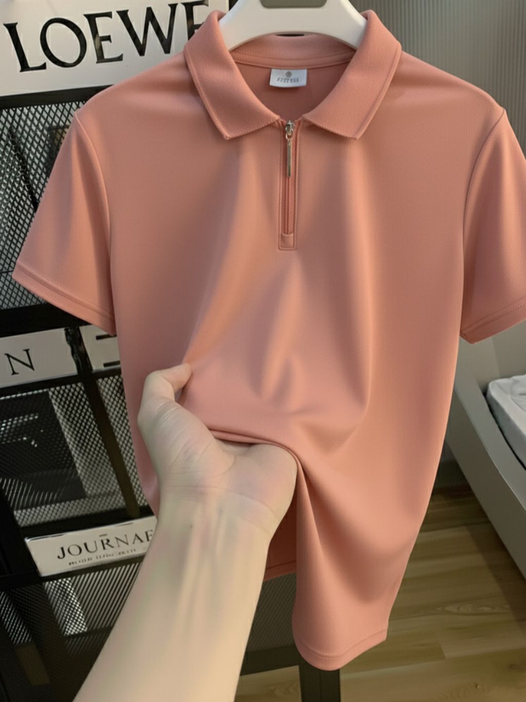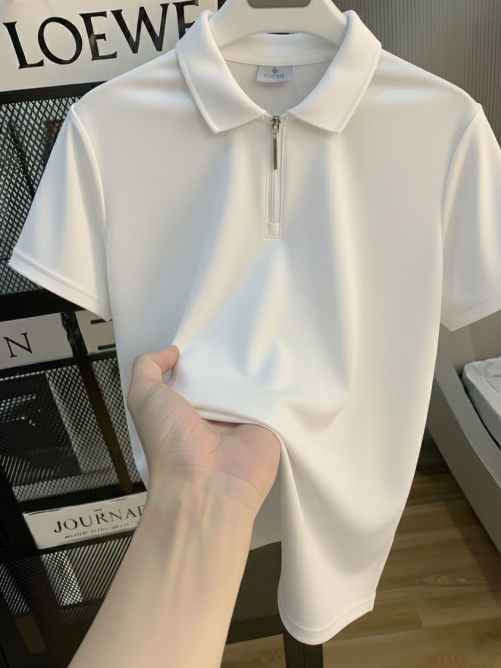 Cogan Kaos resleting pria kerah lengan pendek premium distro kekinian ukuran M L XL XXL