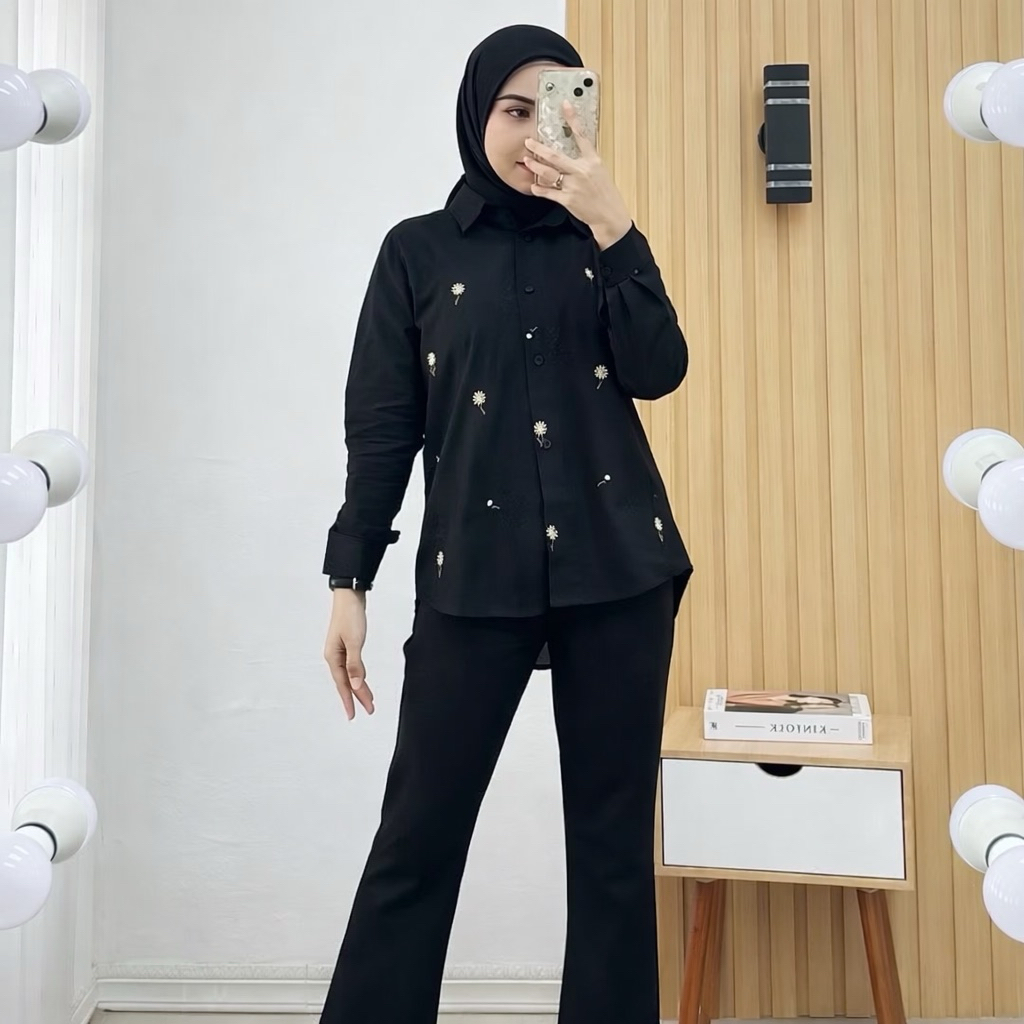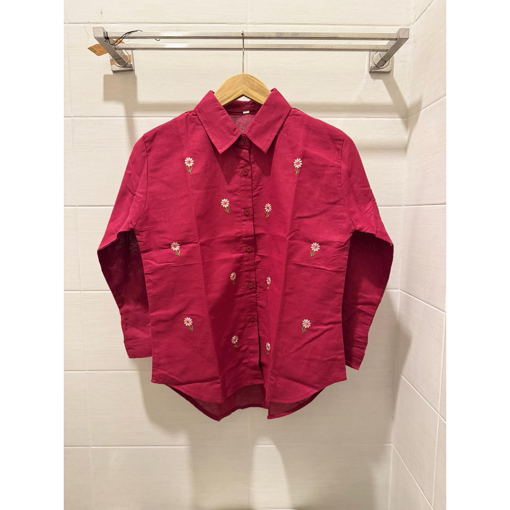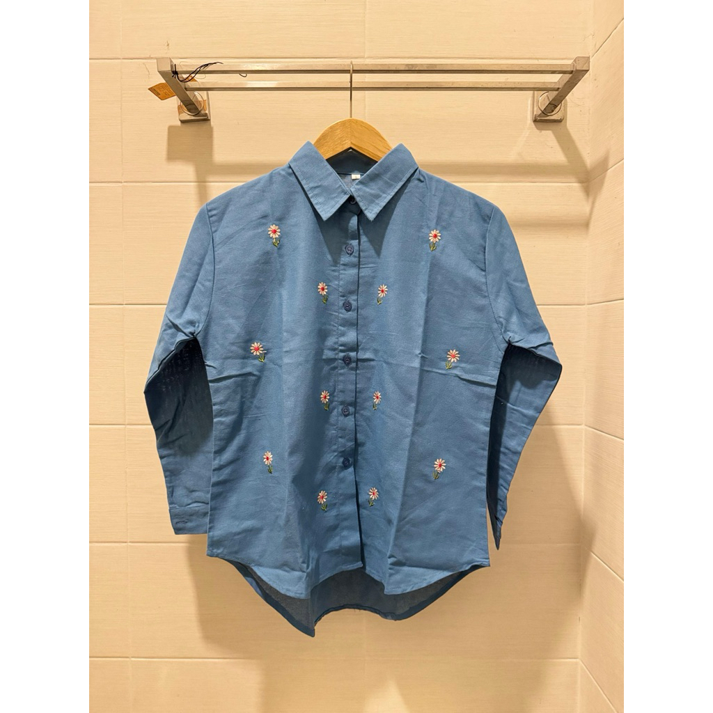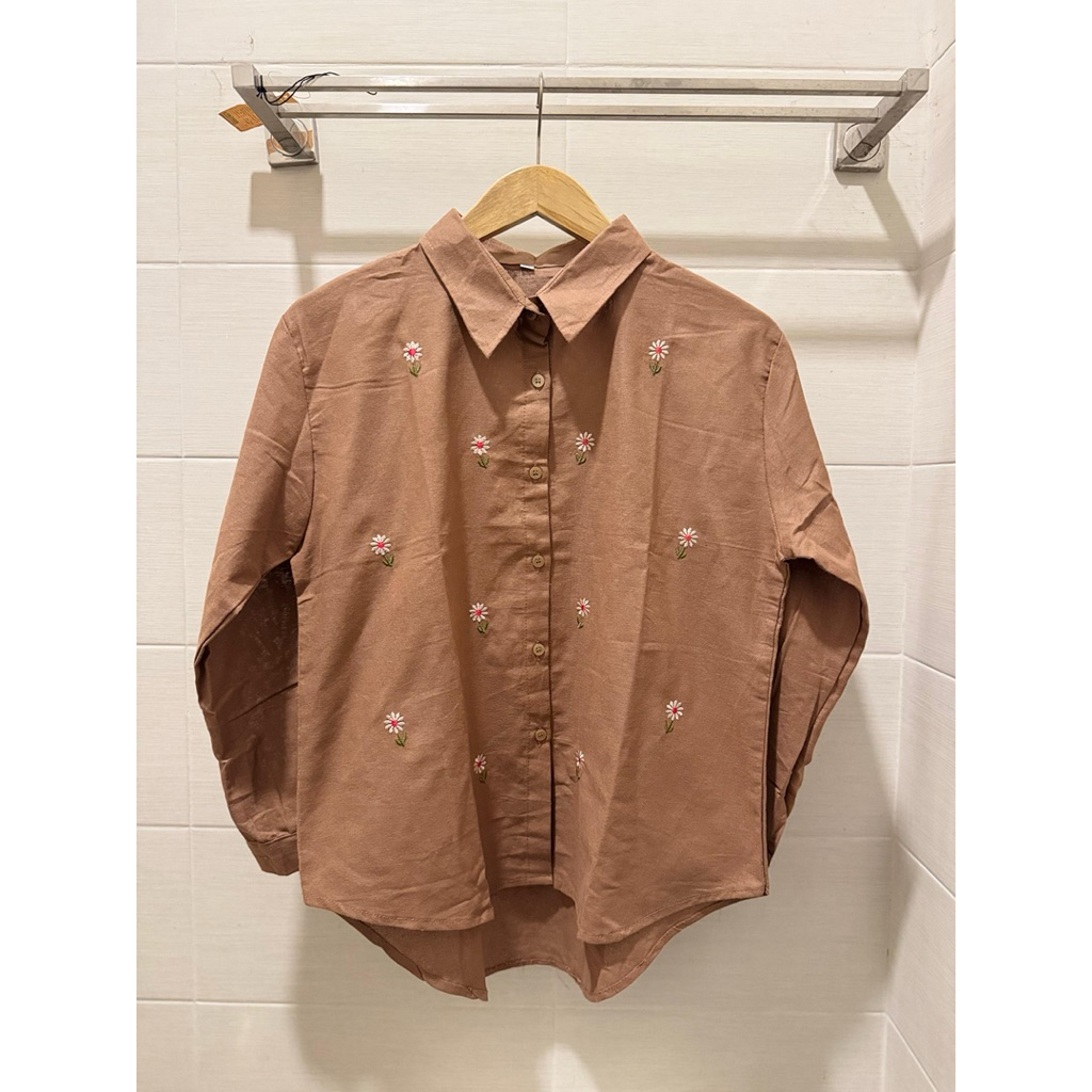 Kemeja Zahra Wanita Bordir Motif Bunga Katun Linen Lembut Formal Casual