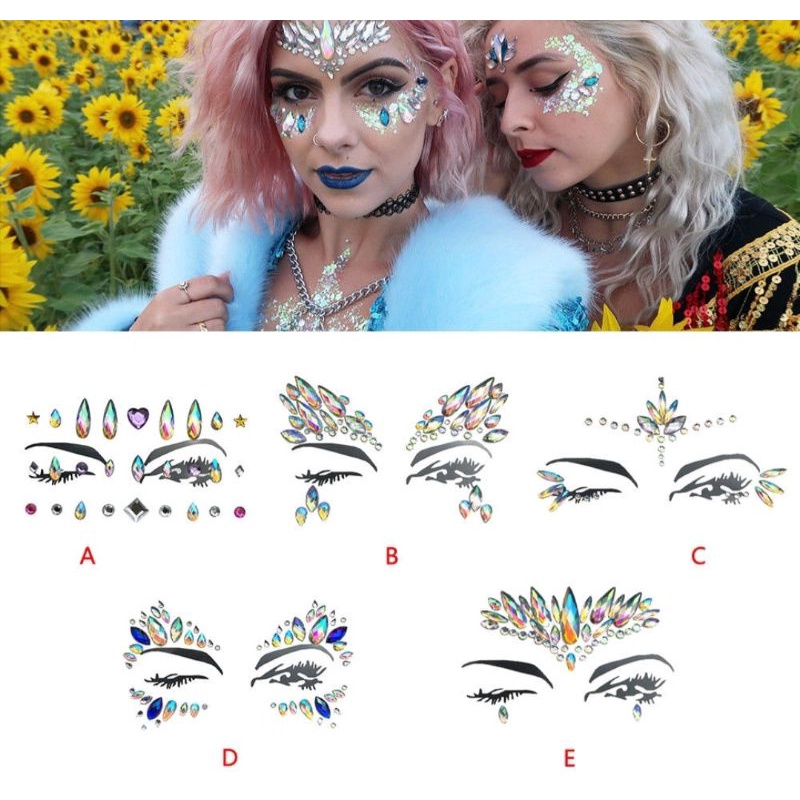 (READY TEGAL)Tato Wajah/Tubuh Sementara Model Stiker Desain Berlian Imitasi Berkilau