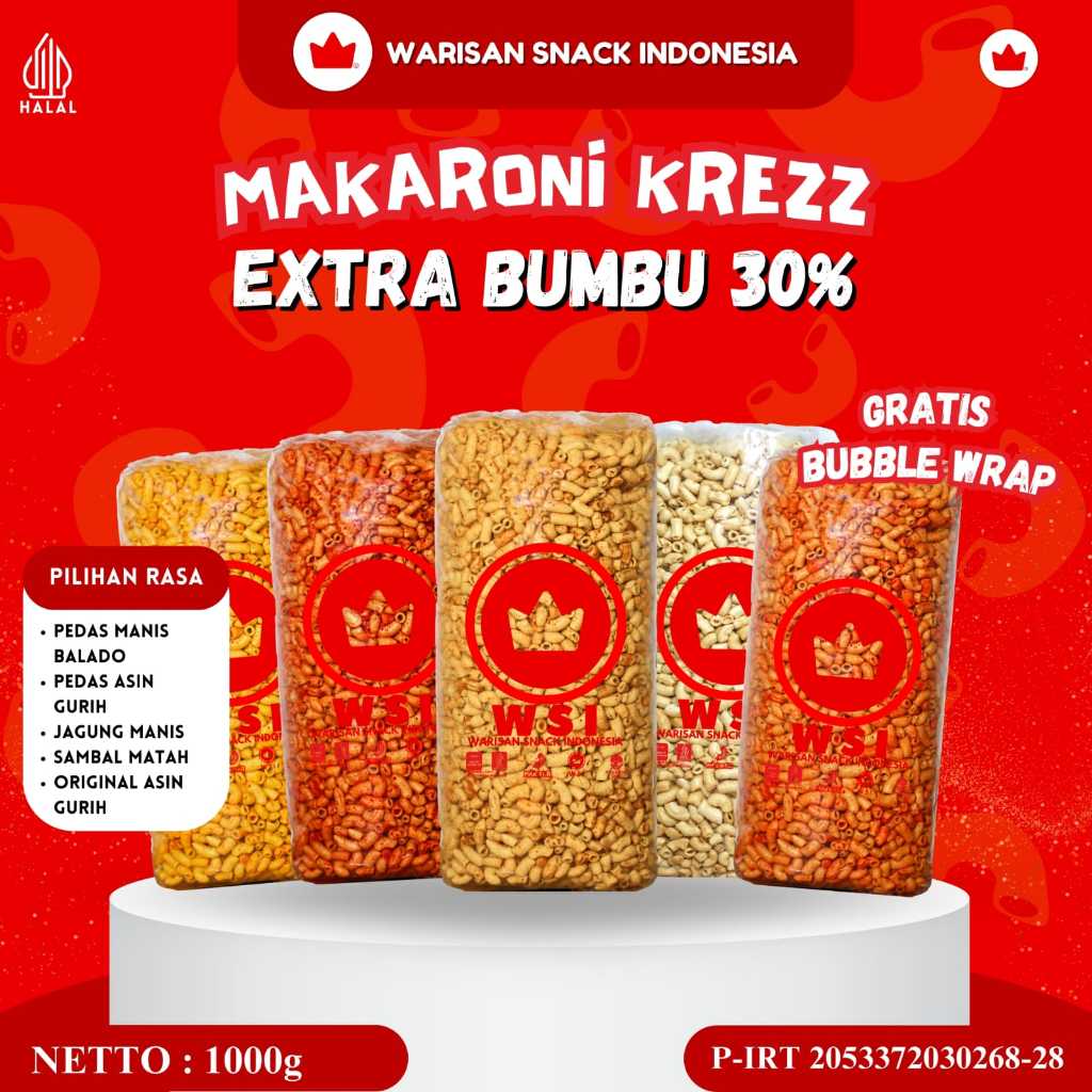 1 BAL MAKARONI BANTAT KRESS 5 VARIAN RASA JAGUNG MANIS, ASIN GURIH, PEDAS BALADO, SAMBAL MATAH, MAKARONI SOLO