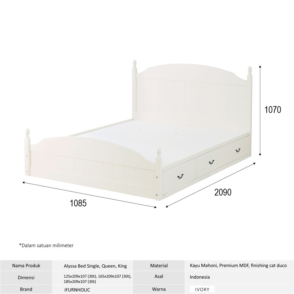 IFURNHOLIC Alyssa King Bed 180 | Dipan Tempat Tidur | Rangka Tempat Tidur Laci | Divan Laci Kayu